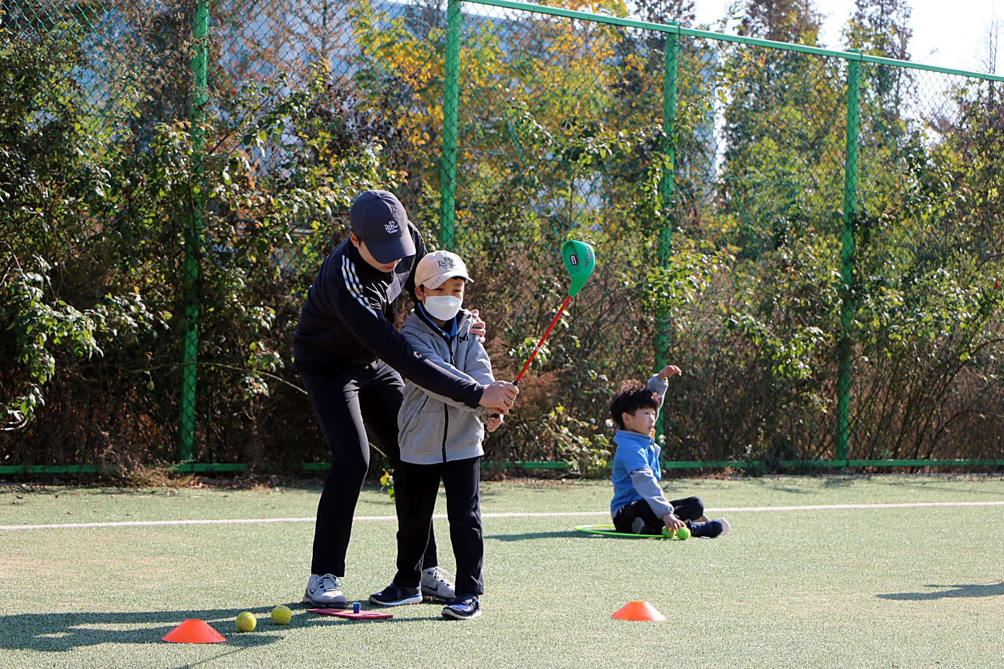 팔로우시 손목 코킹동작에 대해서 설명해 주고 있는 모습