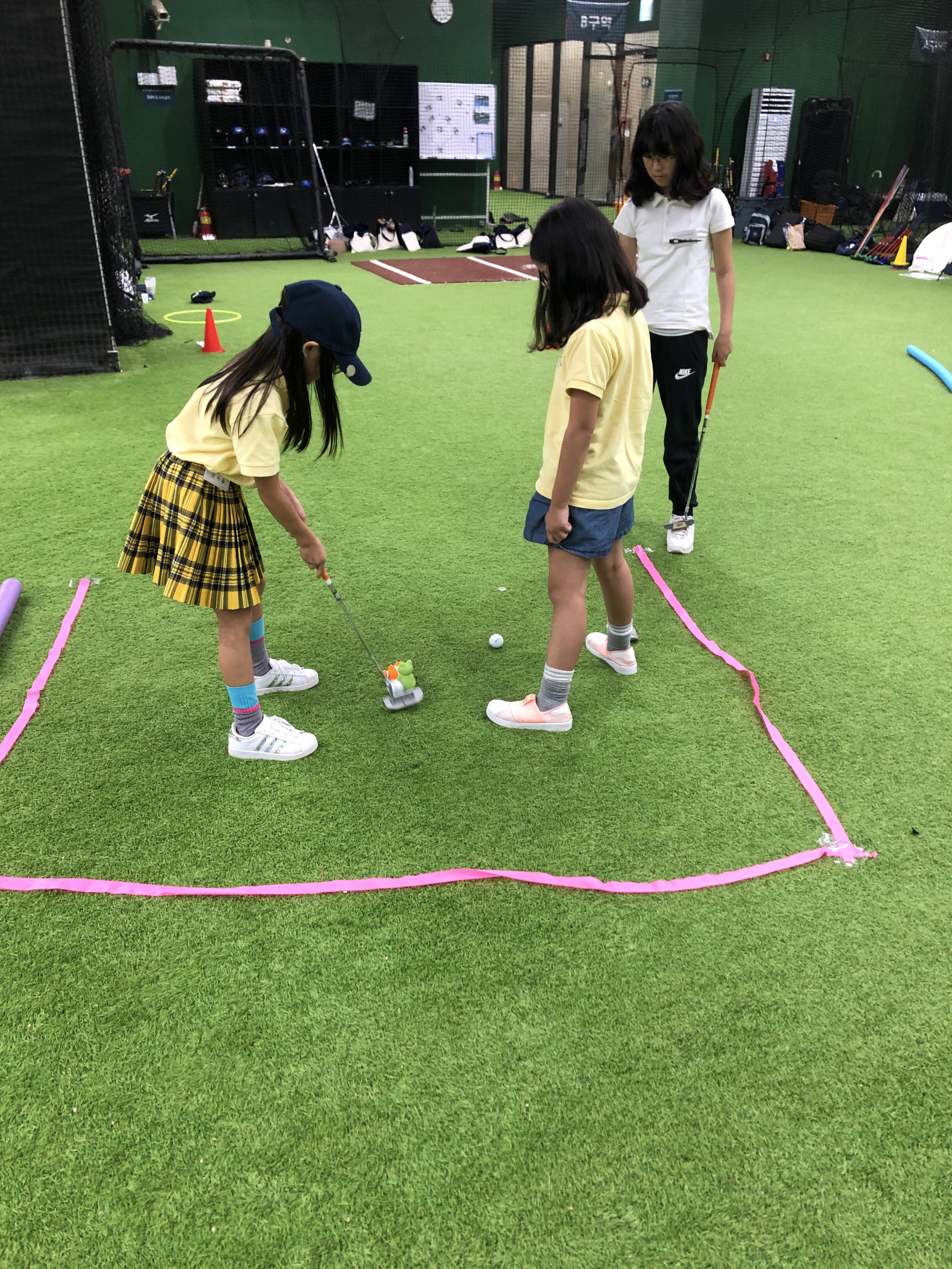 그룹별 퍼팅 연습 하고 있는 교육생들의 모습