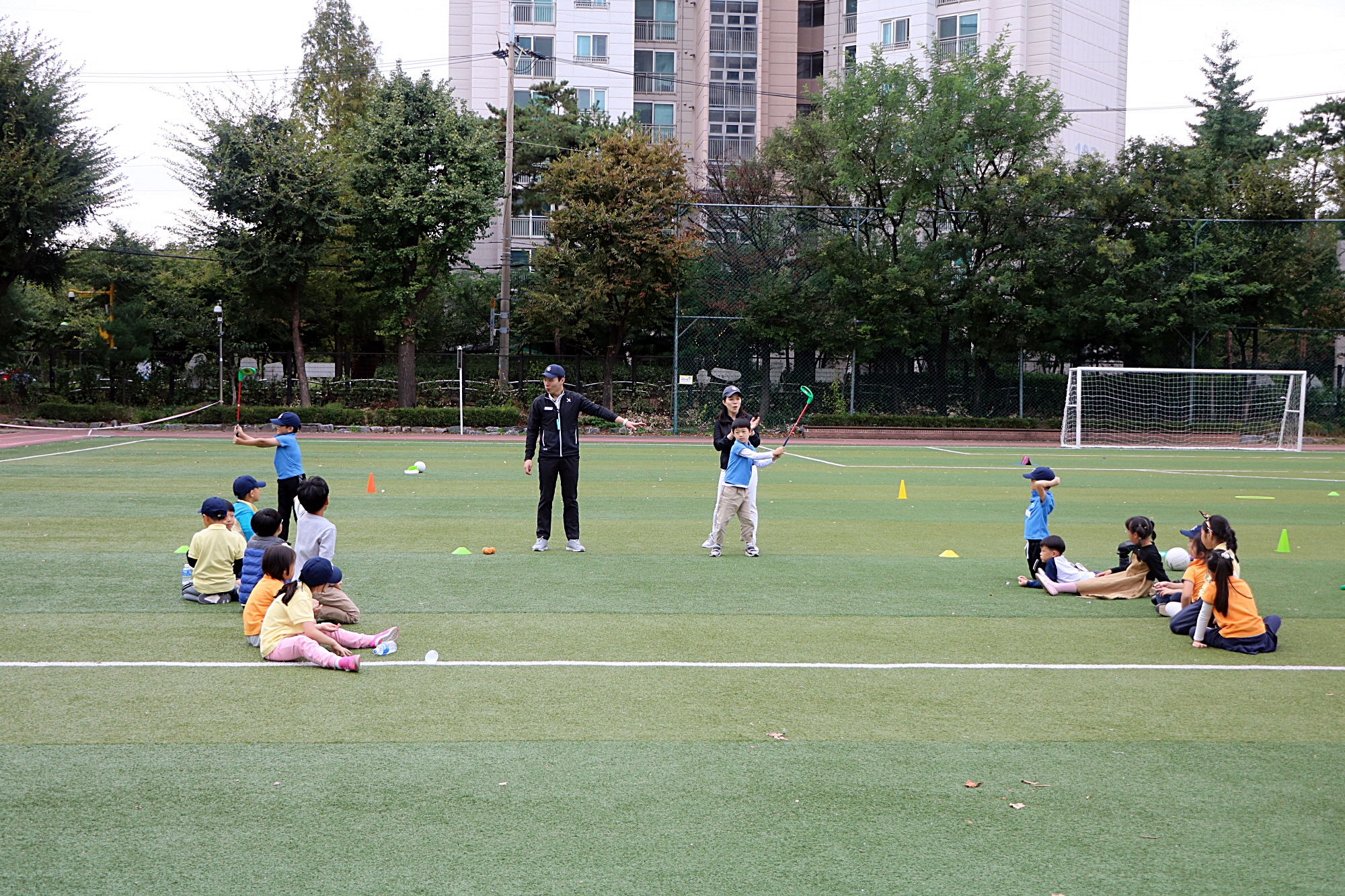 2개조로 나뉘어 L to L 스윙 대항전을 펼치고 있는 아이들