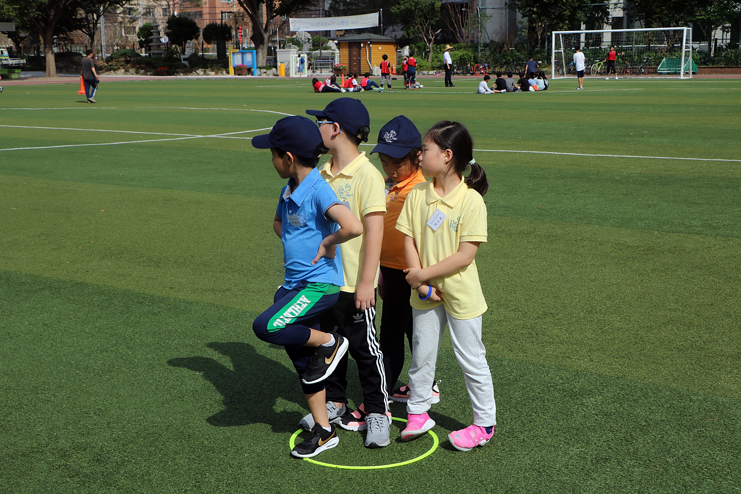 부상방지를 위해 안전 구역은 생명! 코치님 설명조차 안전구역에서 듣고 있는 모습