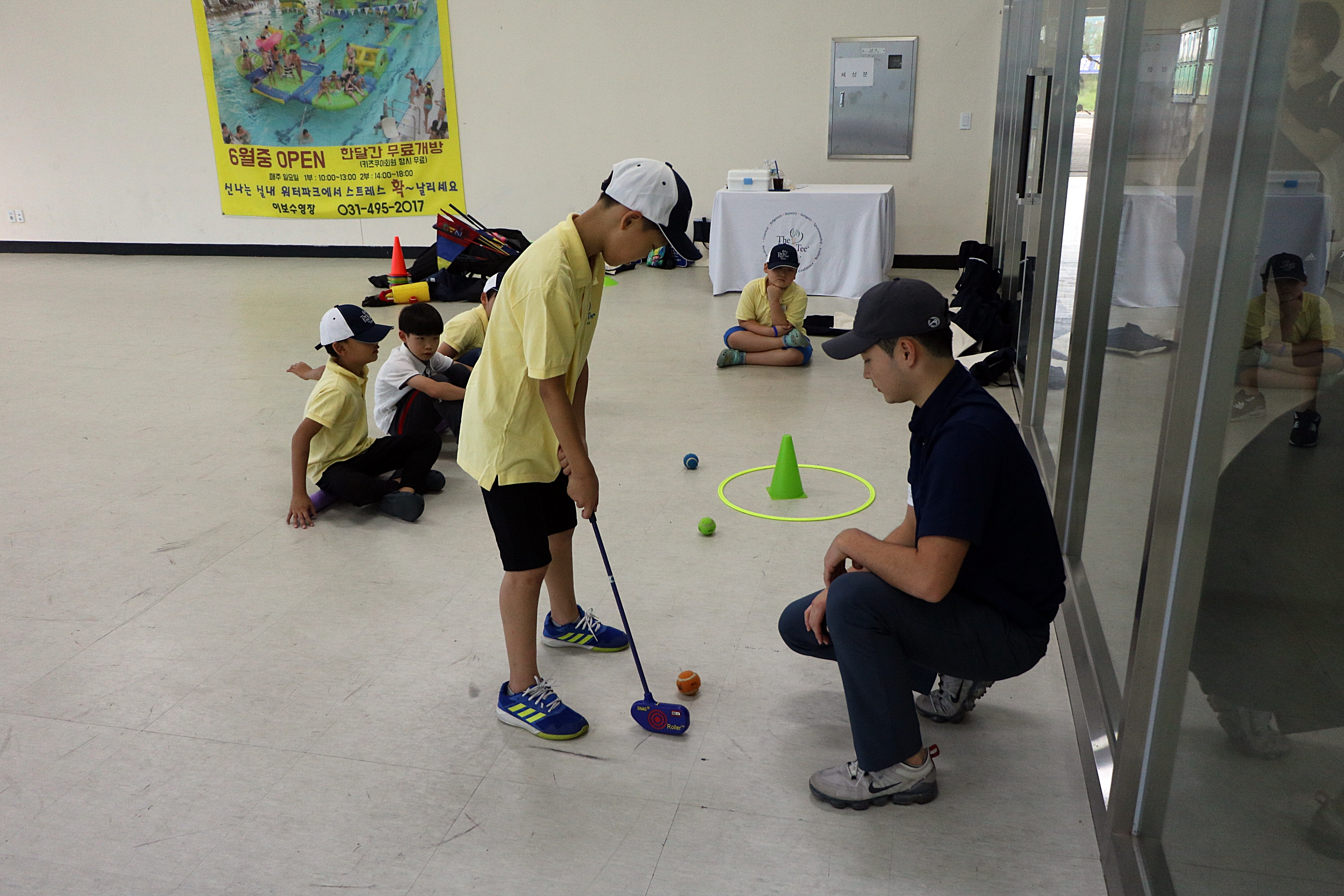 원구선타의 골프룰에 맞게 차례대로 퍼팅을 시도하고 있는 모습