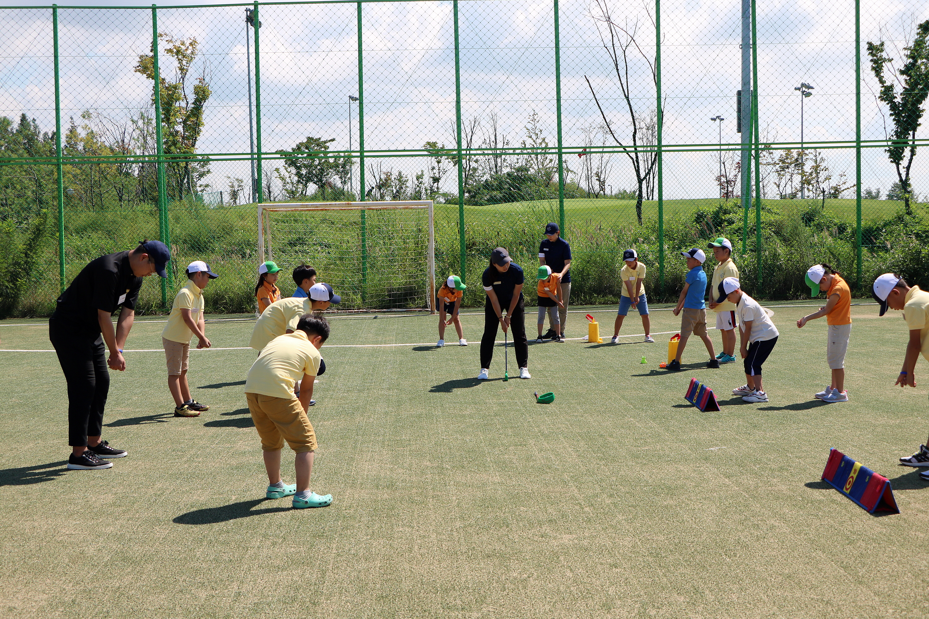 오늘 배울 퍼트에 대해서 단체로 레슨을 받고 있는 모습