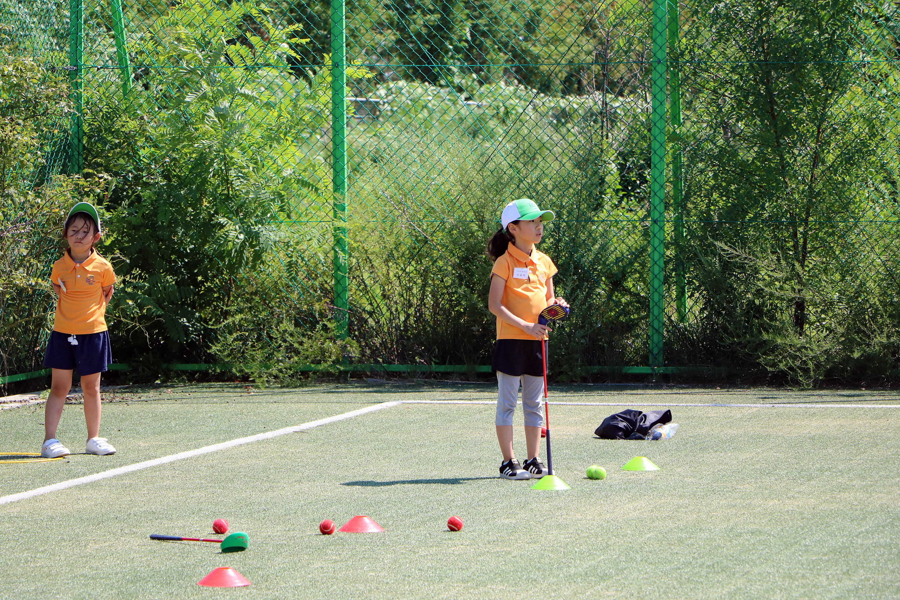 대기시엔 반드시 부상방지를 위해 클럽 헤드를 잡아야 하고, 나머지 인원은 안전구역에 있어야 하는 규정을 준수하고 있는 모습