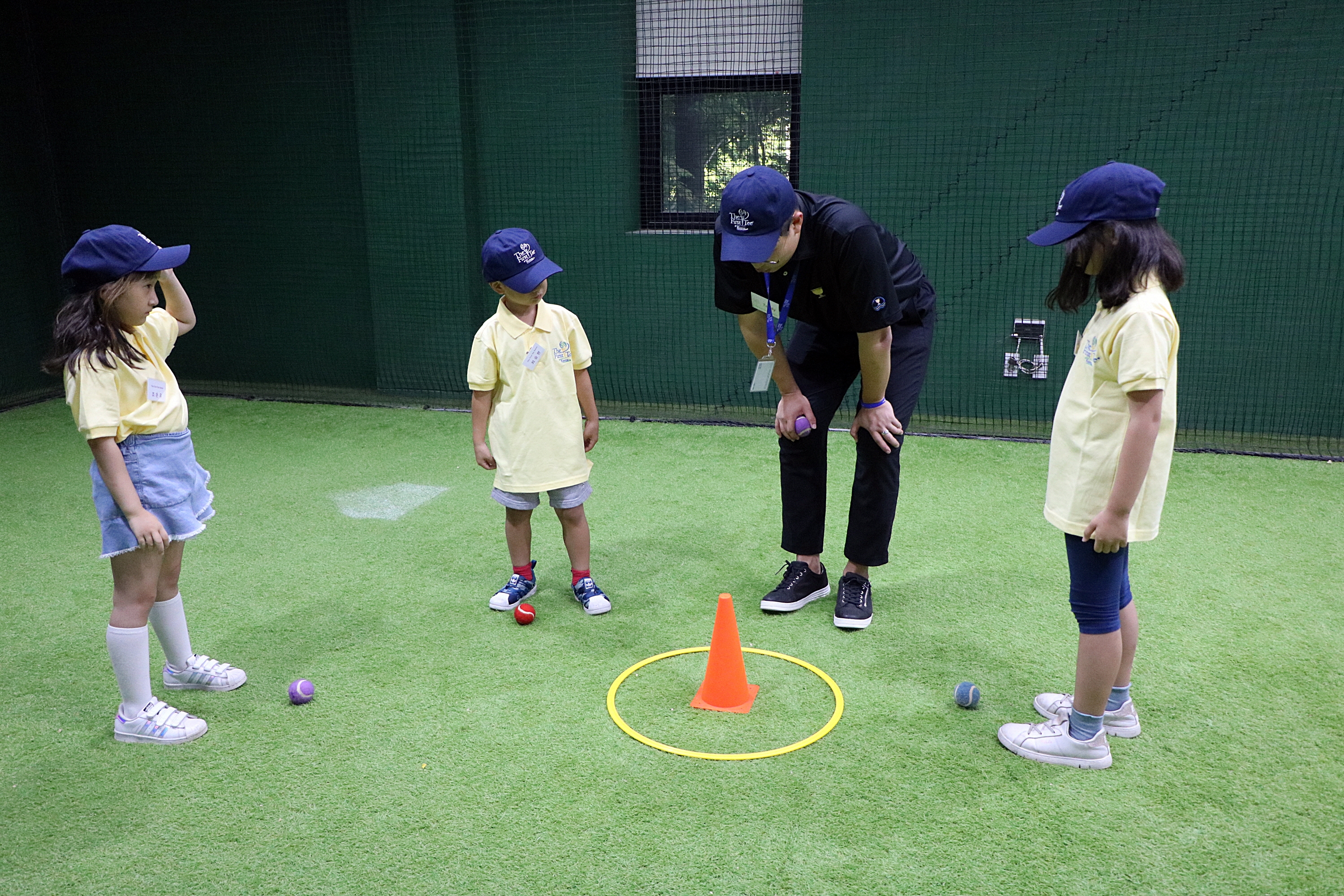 누가 먼저 플레이를 해야 할까요? - 아이들에게 원구선타의 골프룰을 설명해 주고 있는 모습