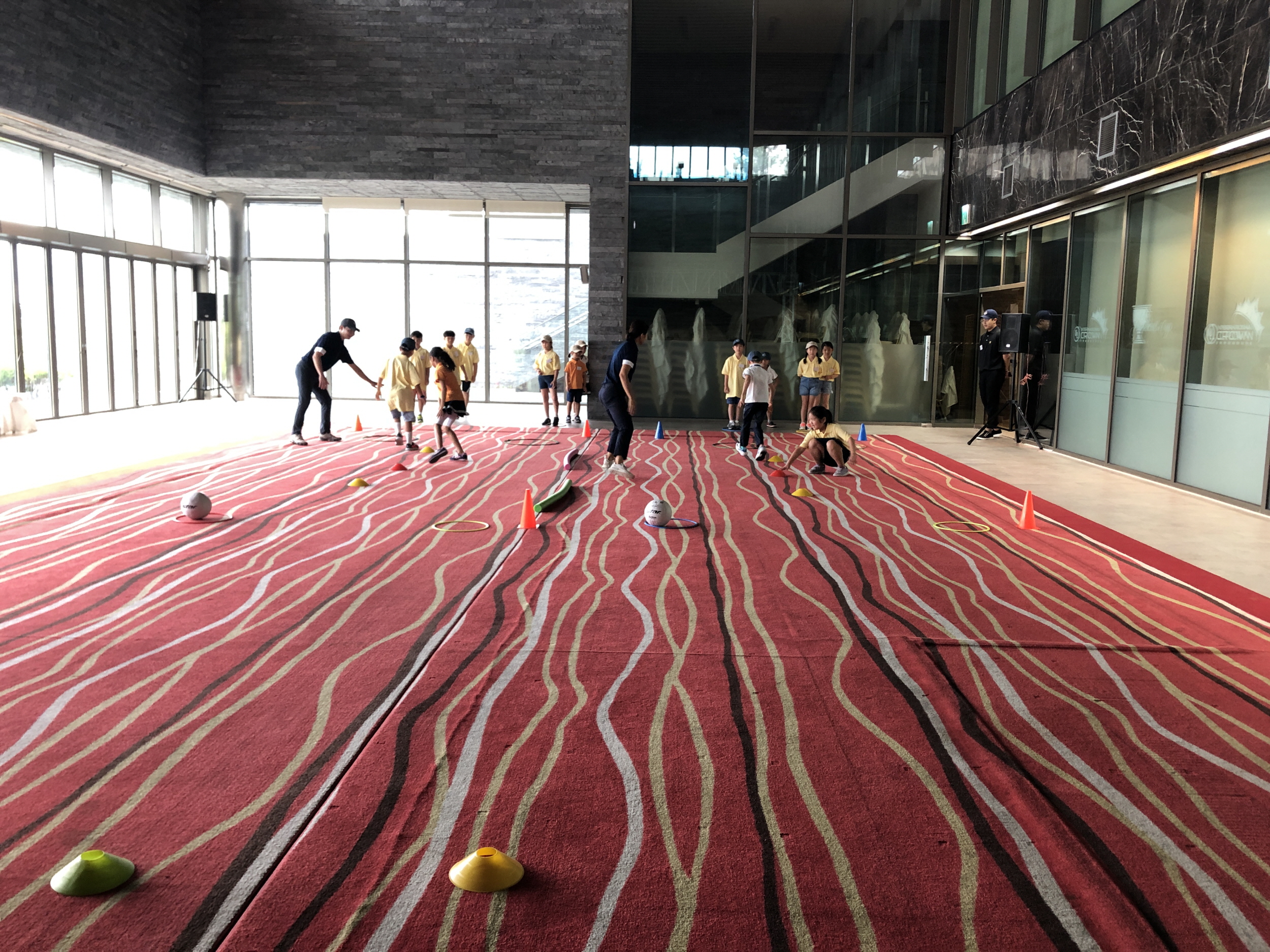 민첩성을 기르기 위한 준비 운동을 하는 교육생들