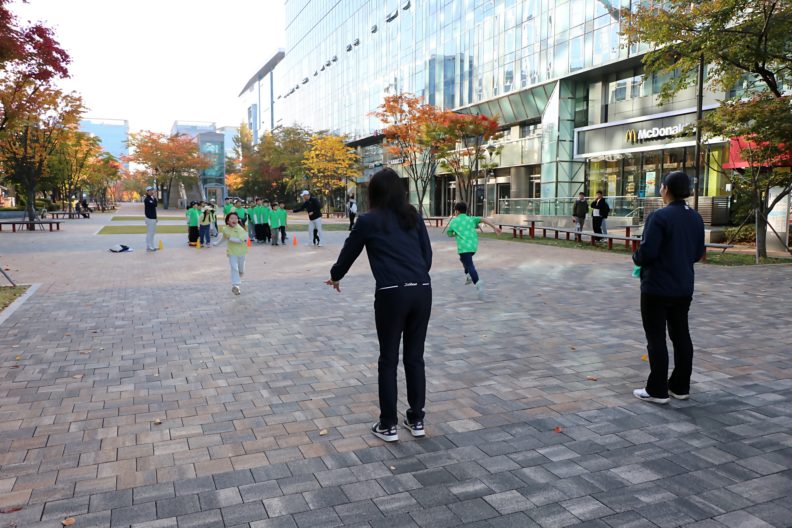레벨 대항으로 반환점 돌아오기 달리기 시합을 하고 있는 모습