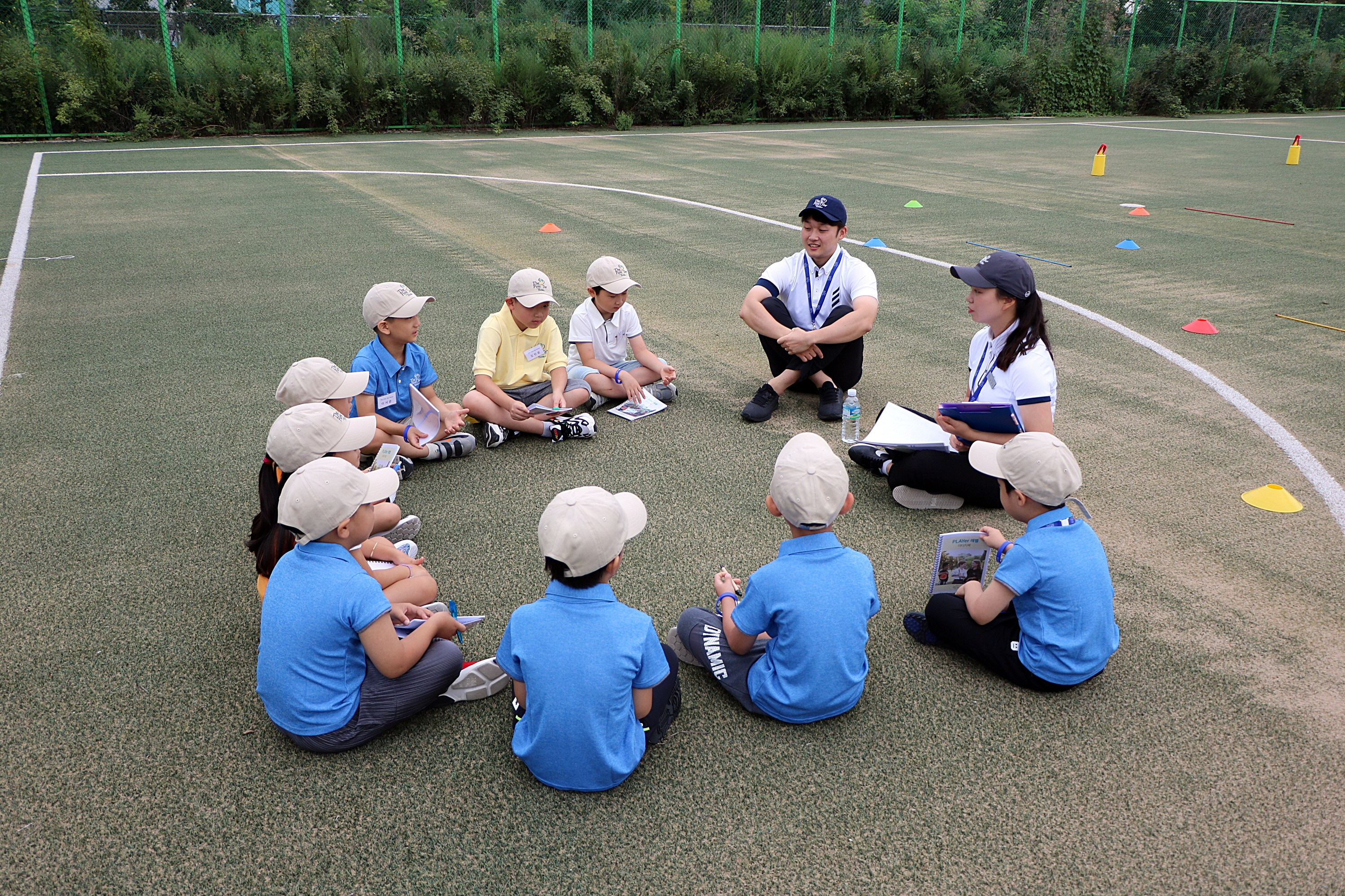 처음 만난 친구들과 차례대로 돌아가면서 자기소개를 하고 있는 아이들