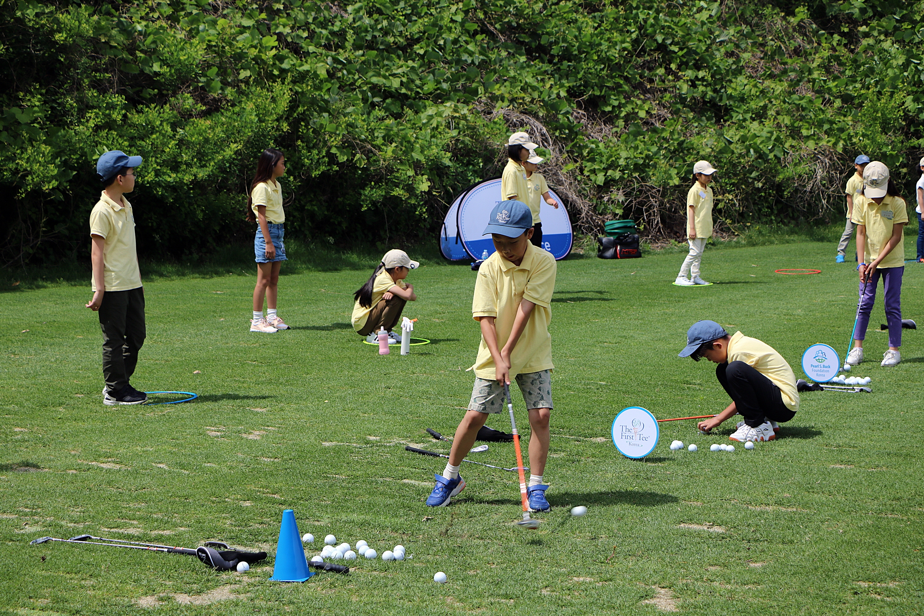 파워풀한 임팩트로 호쾌한 우드샷을 날리고 있는 교육생 모습