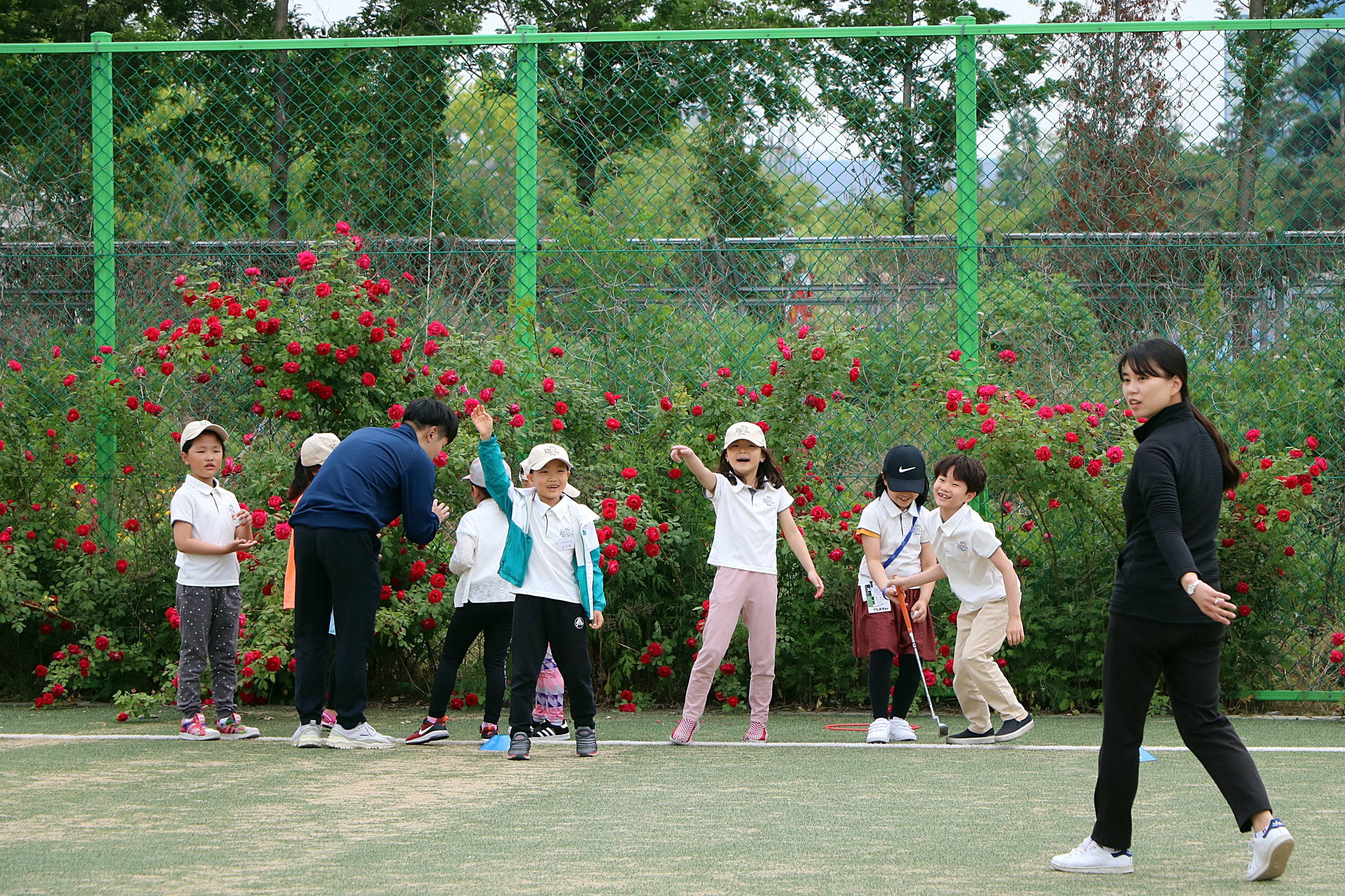 즐겁게 한홀 한홀 라운드를 돌며 스코어 카드에 처음으로 자신과 마커의 스코어를 적고 있는 아이들(종전에는 본인의 스코어만 기록해 봄)