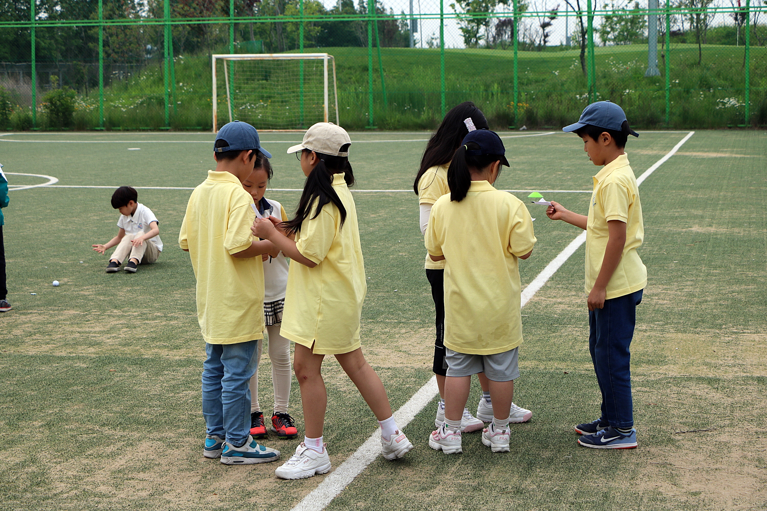 라운드를 모두 마친 뒤 마커가 기록한 스코어와 자신이 적은 스코어를 확인해 보는 아이들