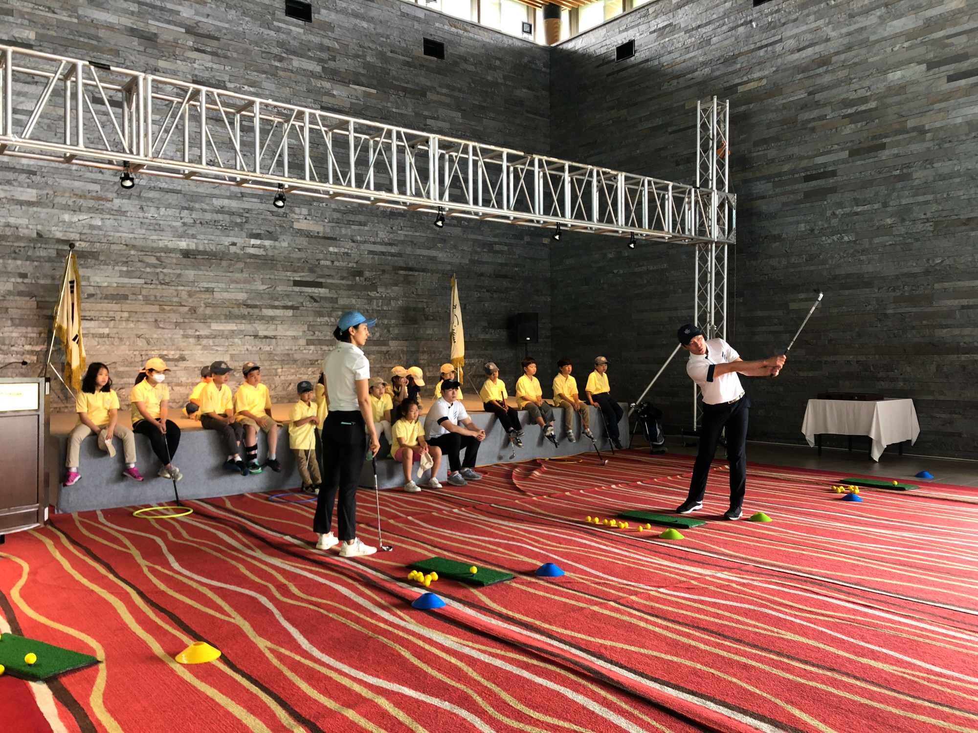 코치님께 풀스윙자세 L-L 를 배우고 있는 모습