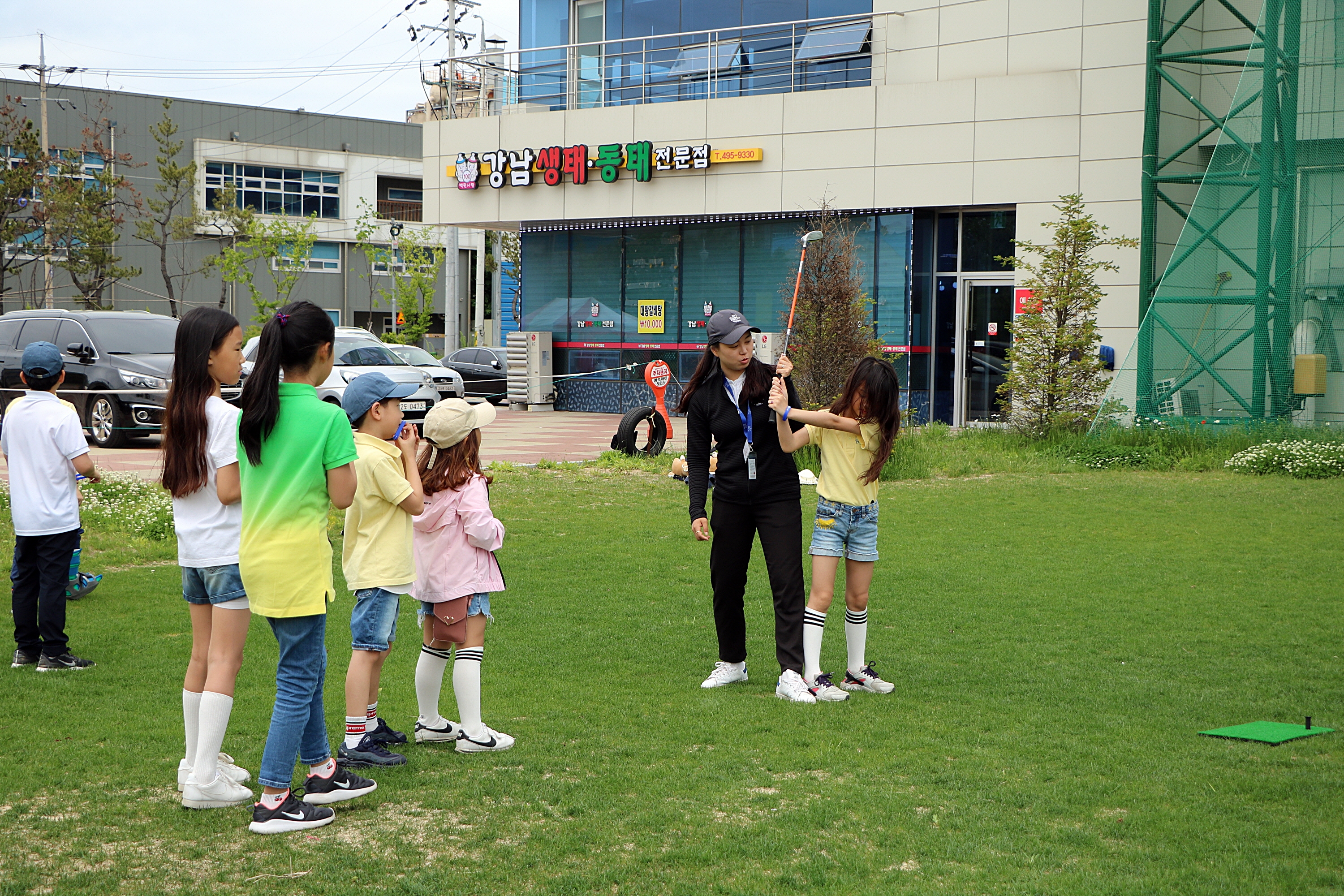 처음 배우는 우드샷에 대한 요령을 알려주고 있는 모습