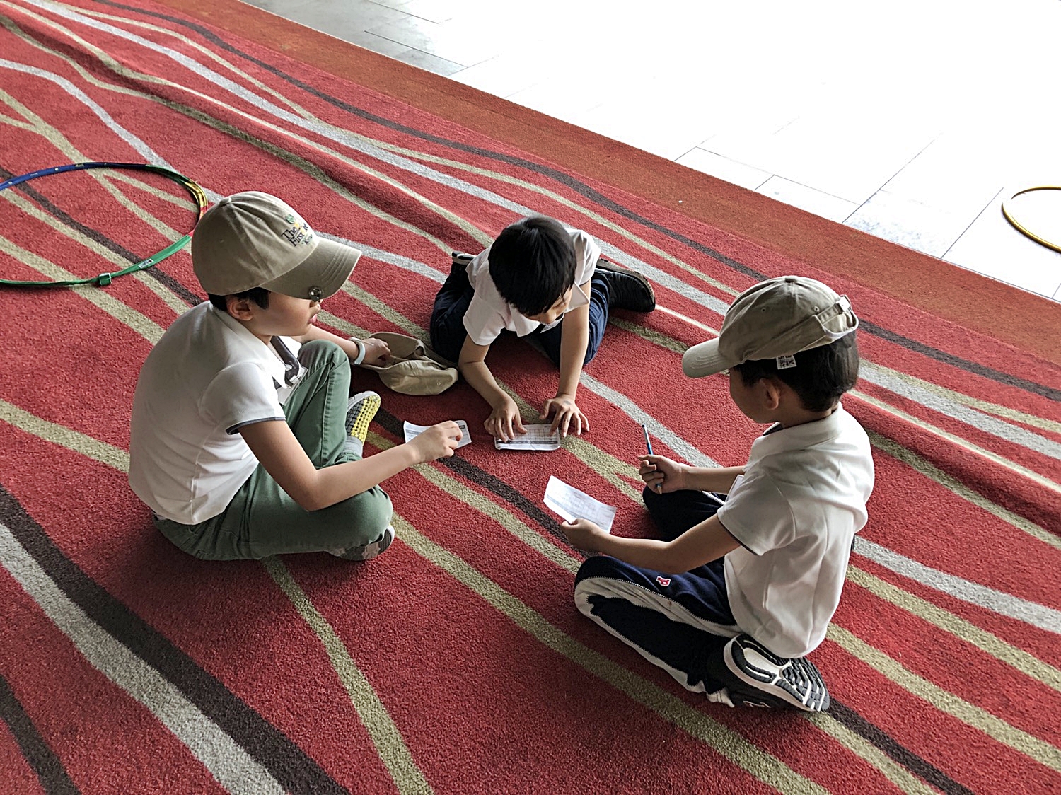 홀아웃한 뒤 자신의 스코어를 스코어카드에 적고 잇는 아이들