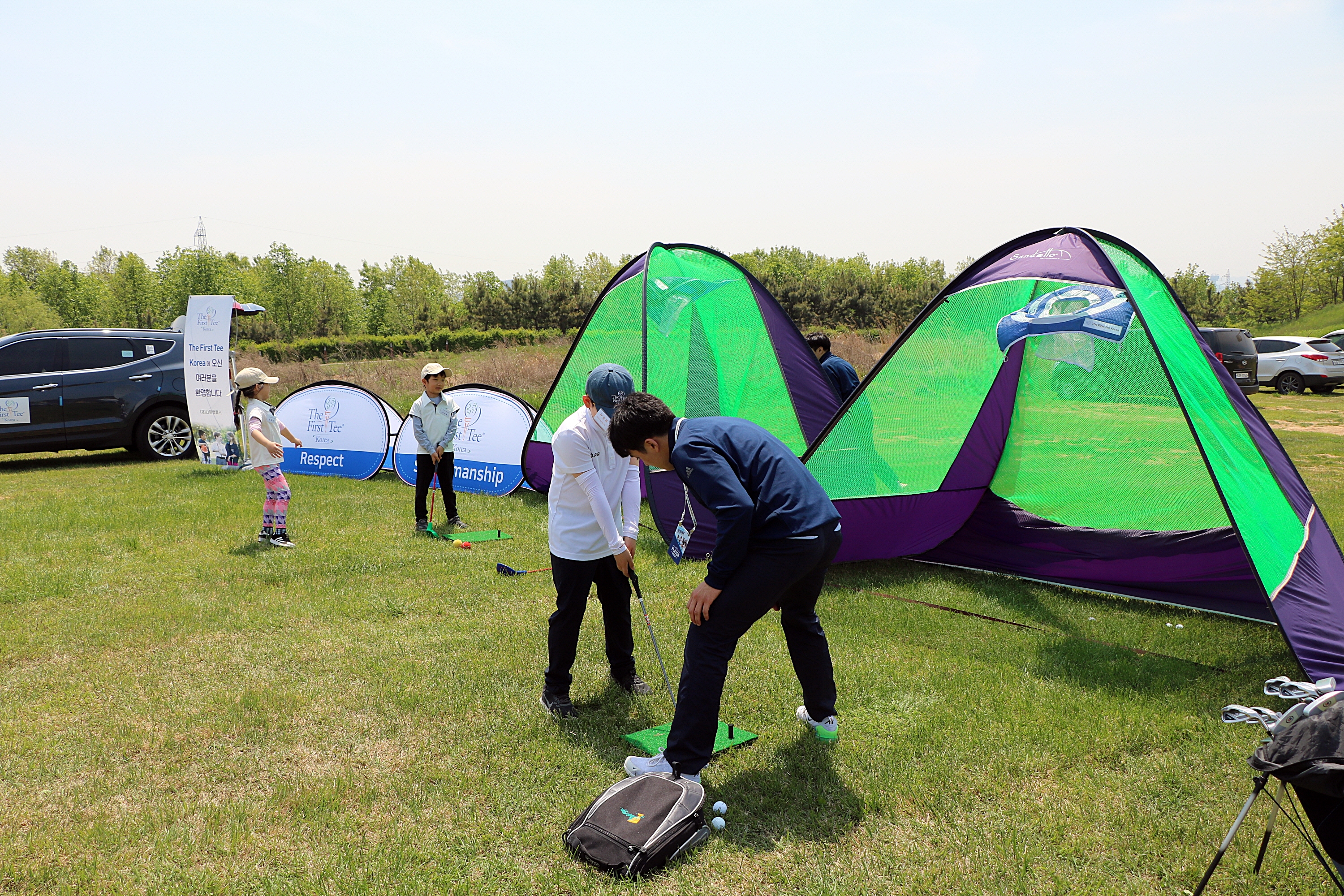 파레벨 학생들에게 올바른 L to L 스윙에 대해서 알려주고 있는 모습