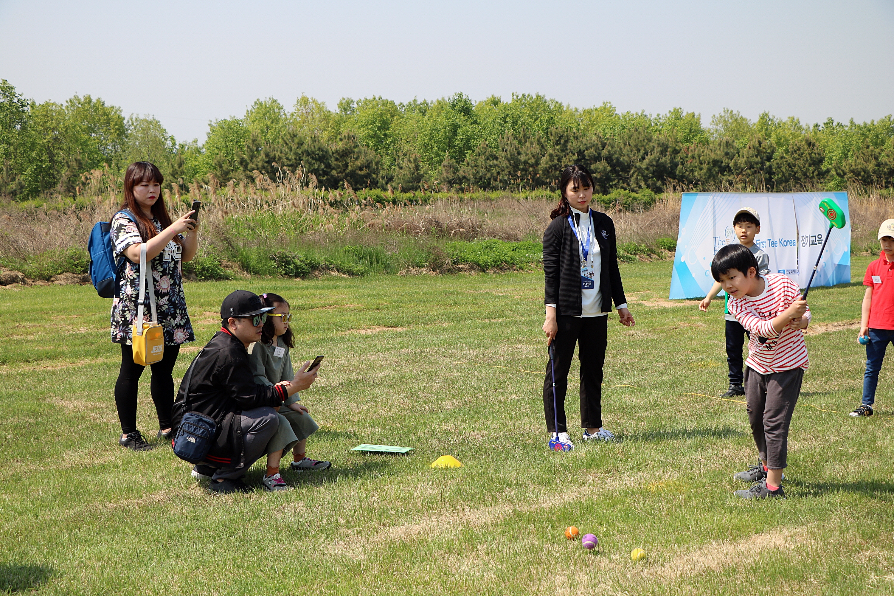 아빠와 동생이 지켜보는 가운데 신중하게 퍼트를 하는 교육생