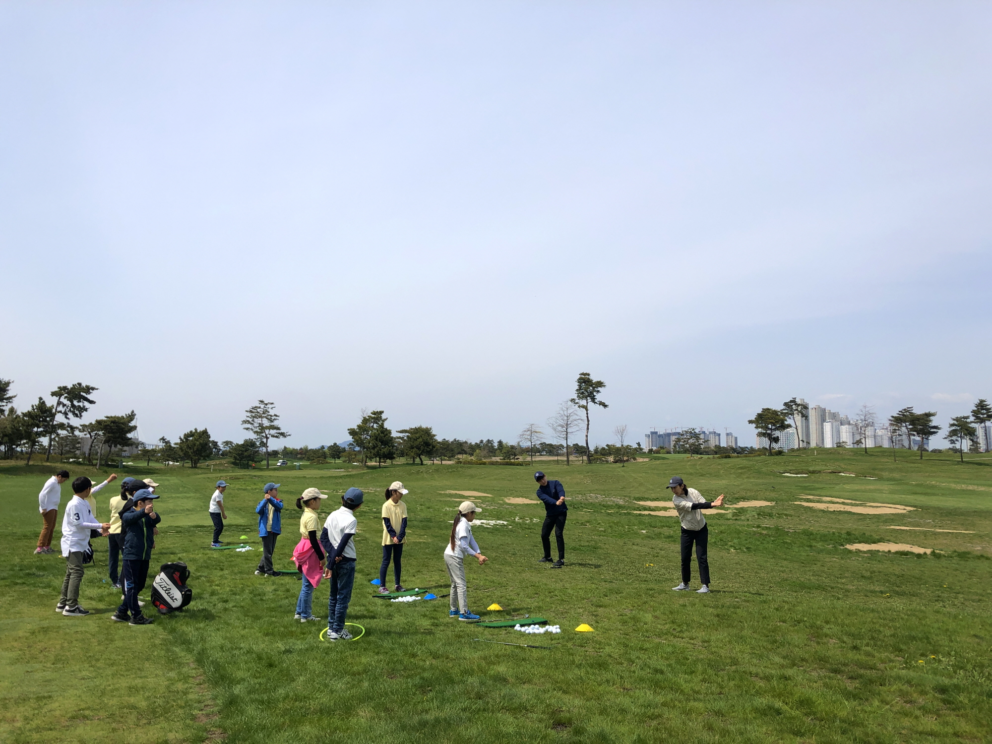 코치님과 함께 L-L 스윙 연습을 하고 있는 모습
