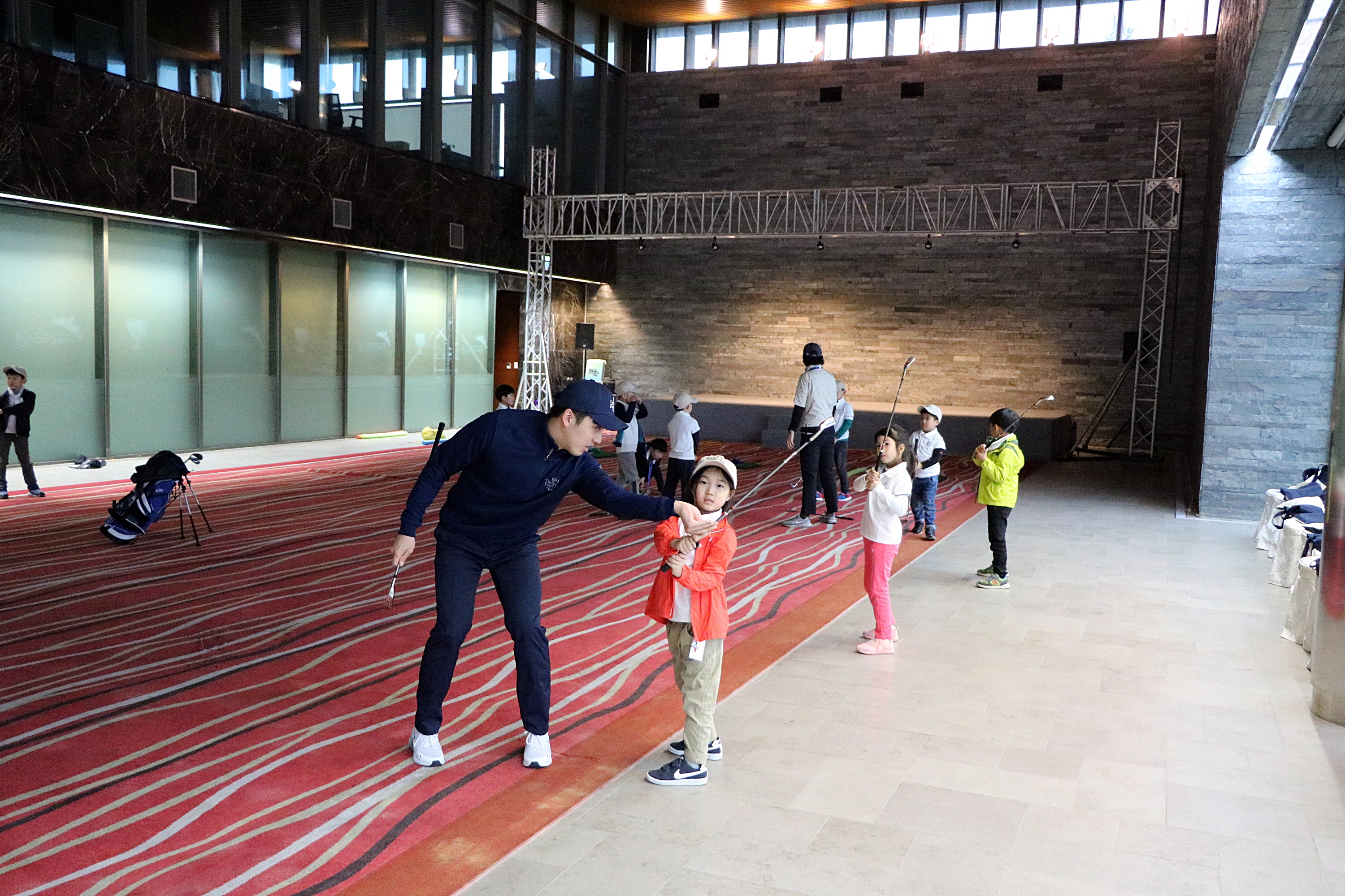 L TO L 스윙의 기본 자세에 대해 설명해 주고 있는 모습