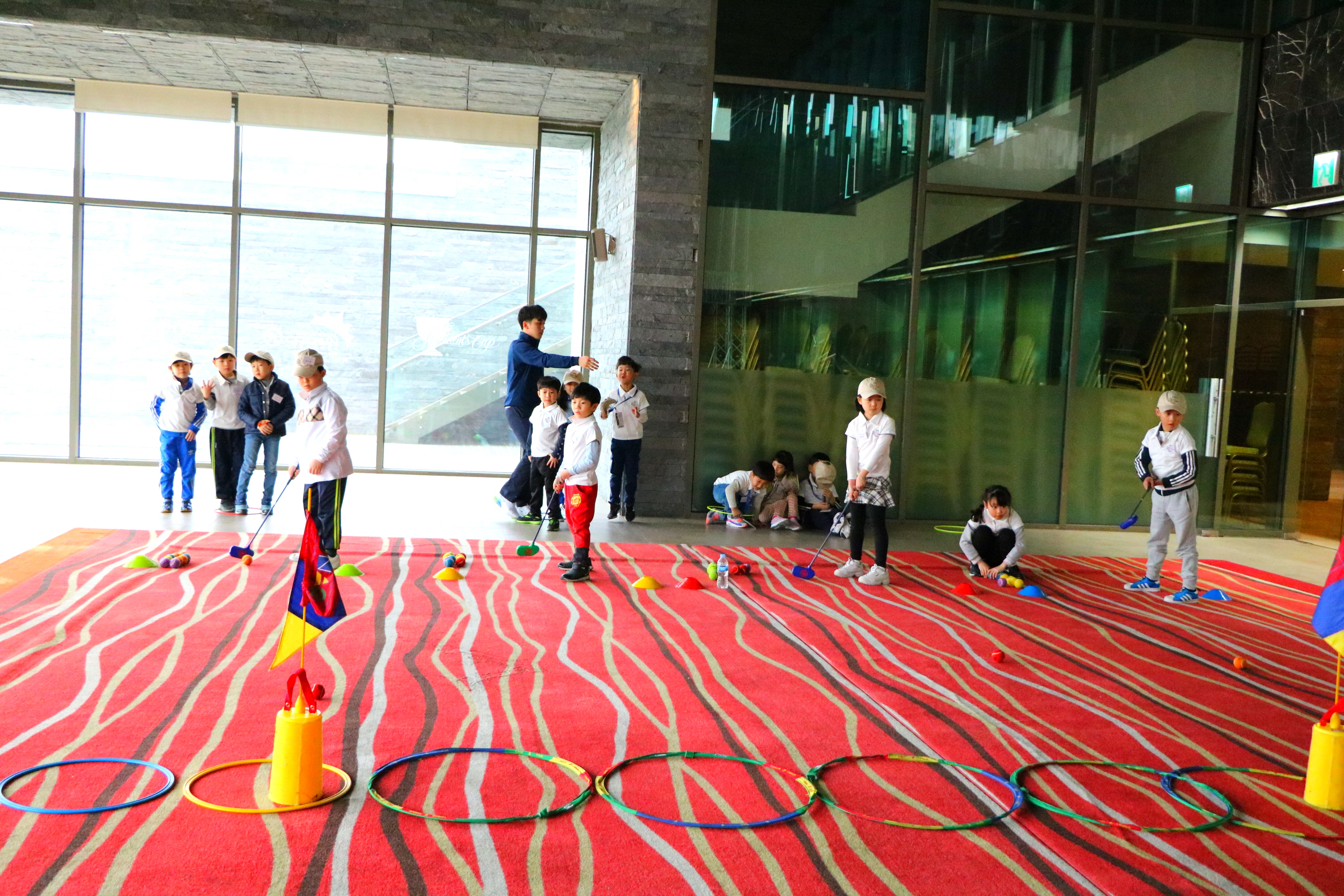 게임을 통한 퍼팅 거리감 익히기를 하고 있는 교육생들의 모습