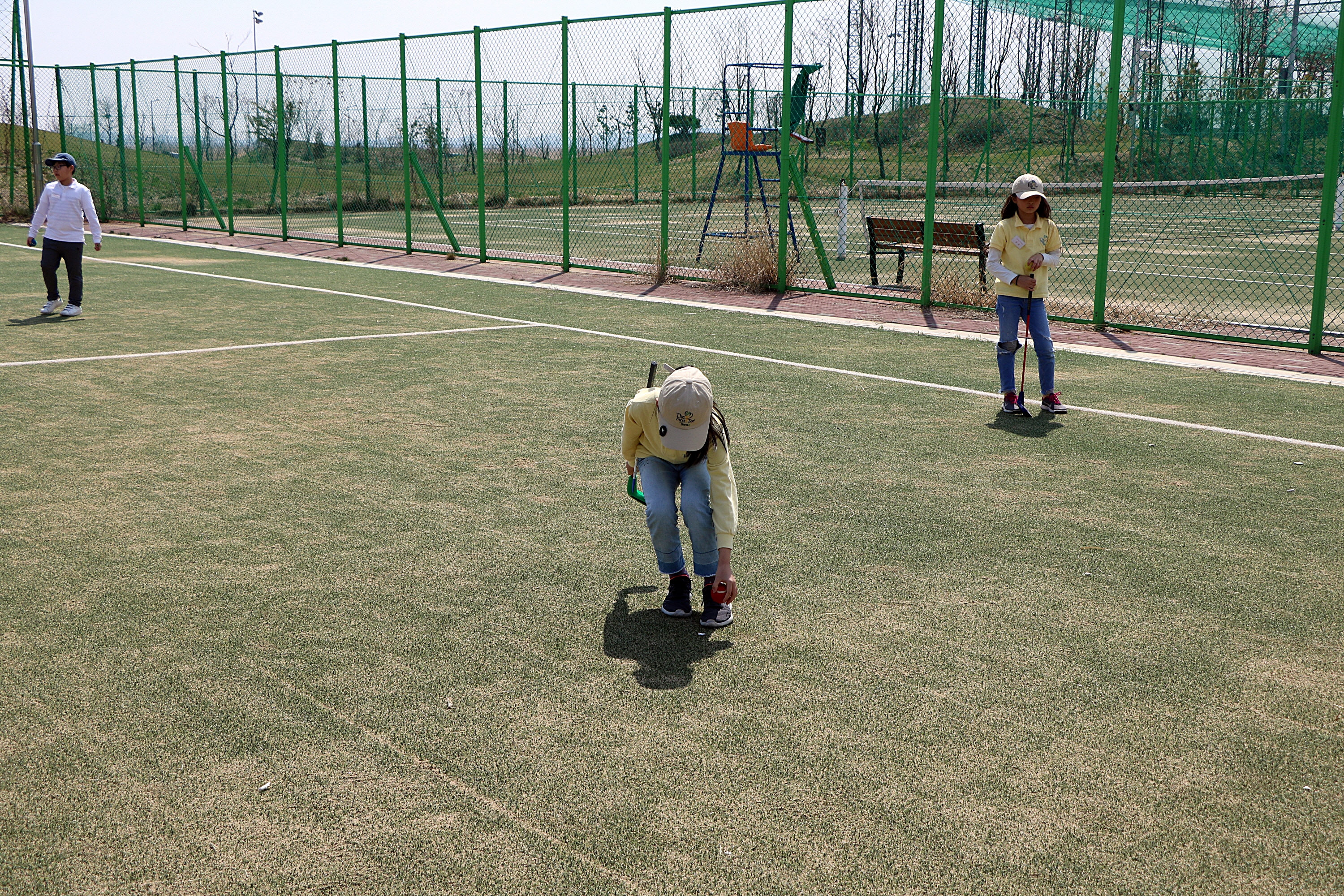 다른 선수들을 위해 볼마커를 놓고 자신의 볼을 집어올리는 모습