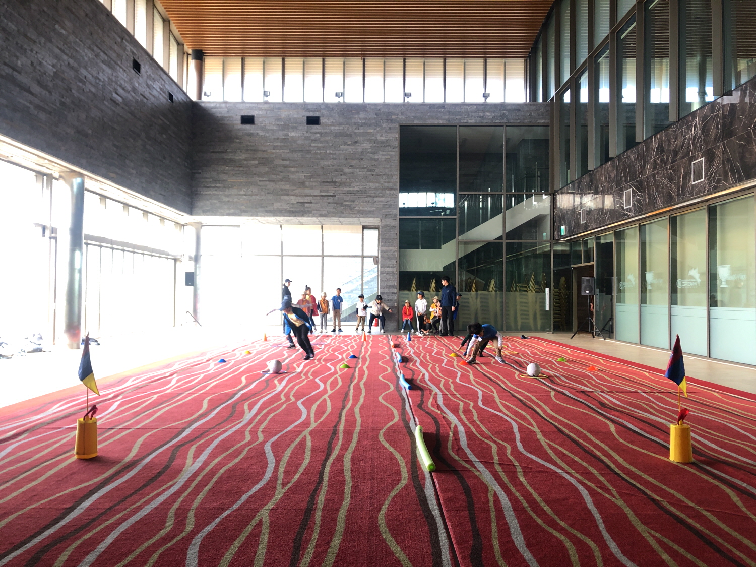 준비운동 : 사이드 스텝을 통한 민첩성과 협동성을 기르는 교육생의 모습