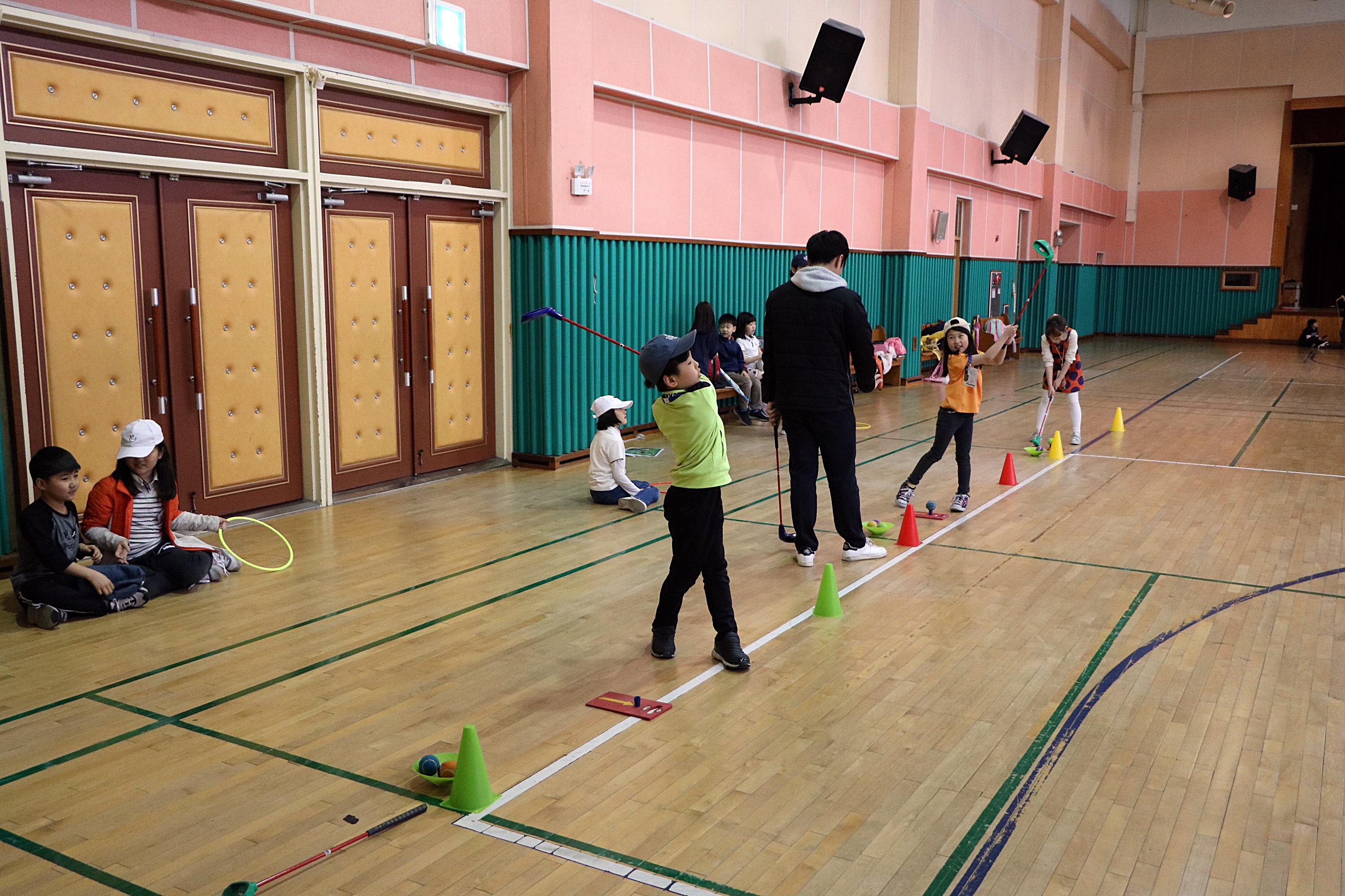 총 3개조로 나뉘어 차례대로 골프 실습 중인 아이들