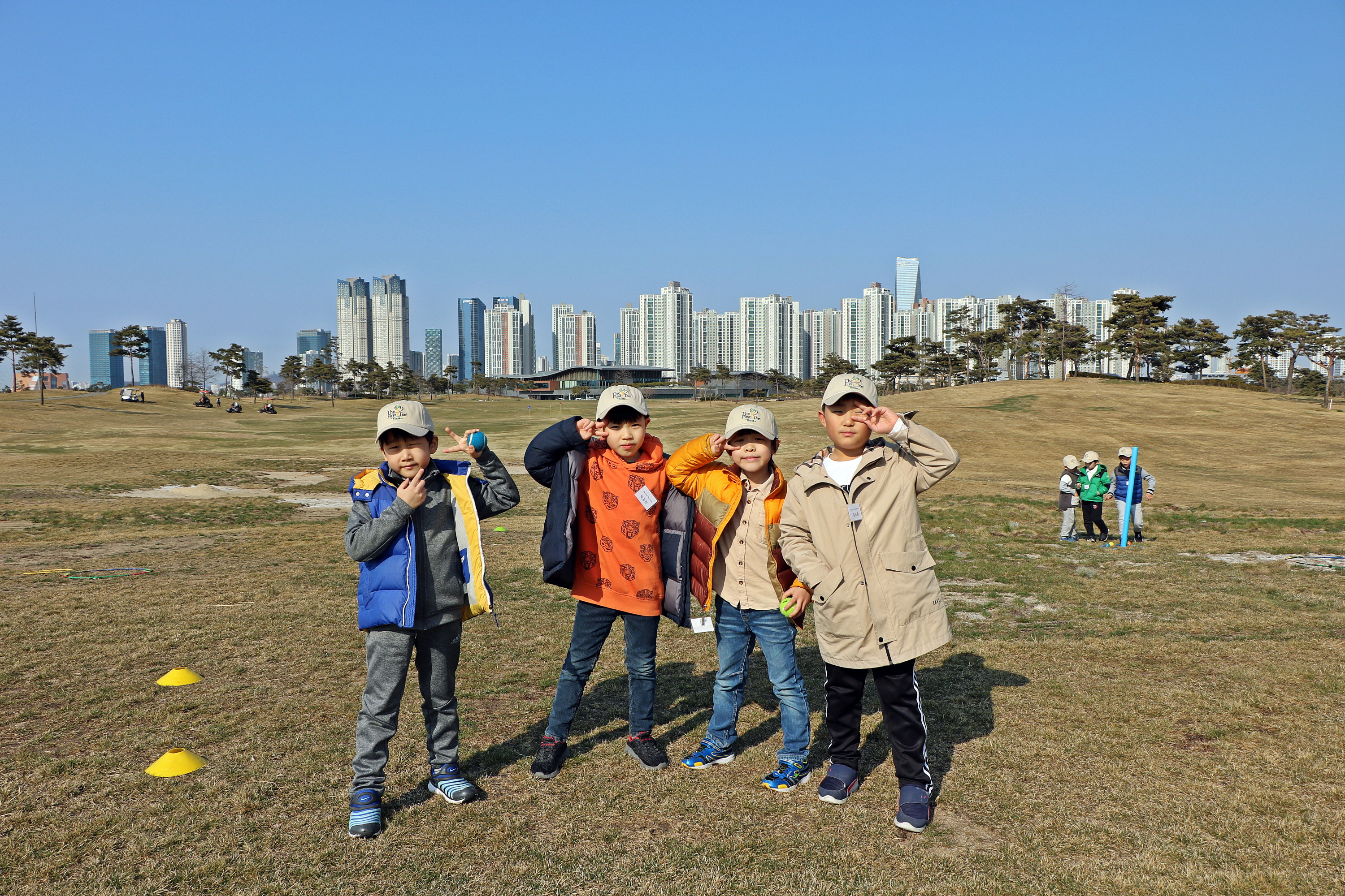 잠시 같은 조 친구들과 기념 사진을 찍도록 포즈를 취해주는 아이들