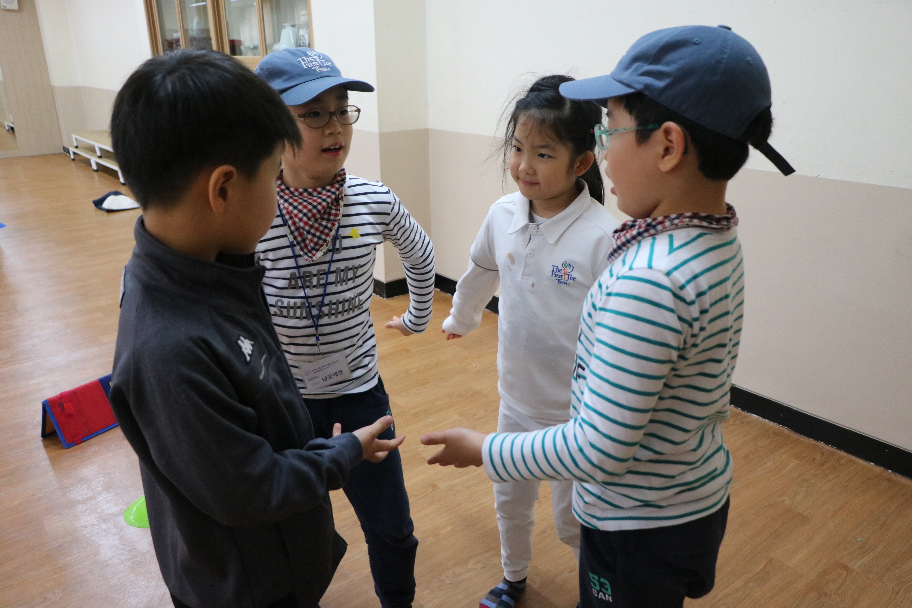 4홀 미니 퍼팅 게임을 하기위해 오너를 정하는 교육생들