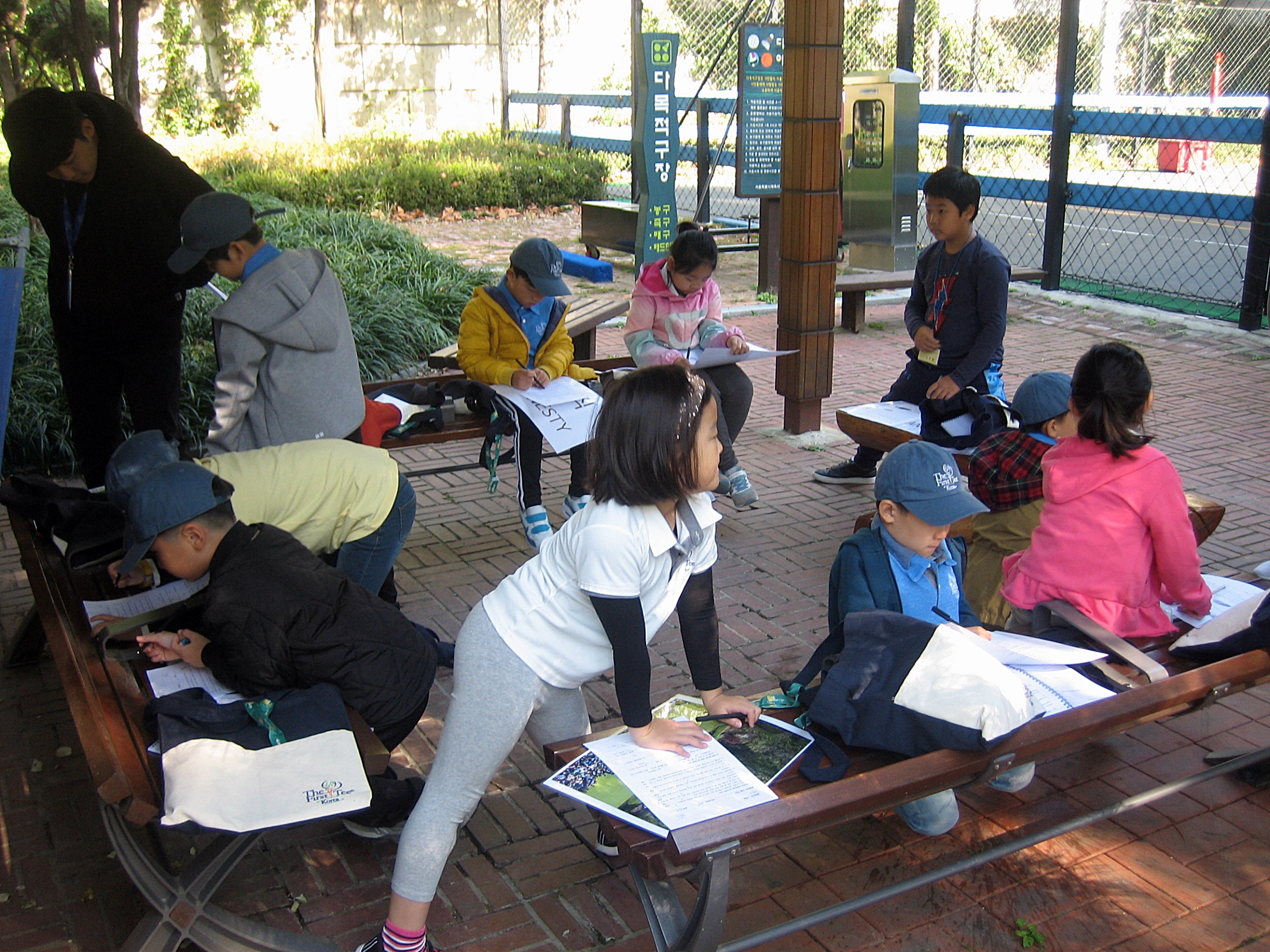 수료식 때 치를 종합평가시험을 앞두고 코치님과 함께 미리 문제풀이를 해보고 있는 아이들
