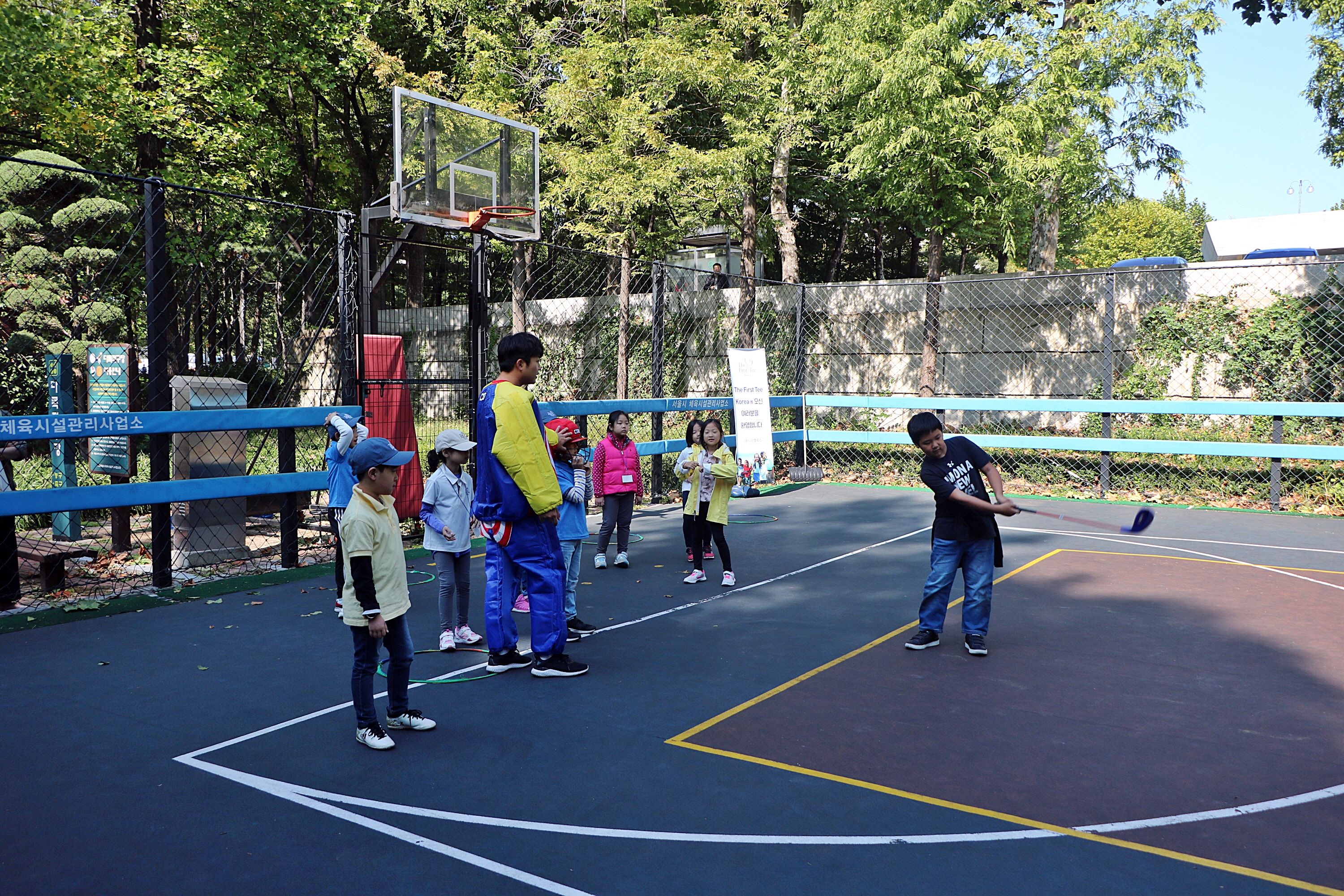 친구들 앞에서 스윙 시범을 보여주는 교육생의 모습