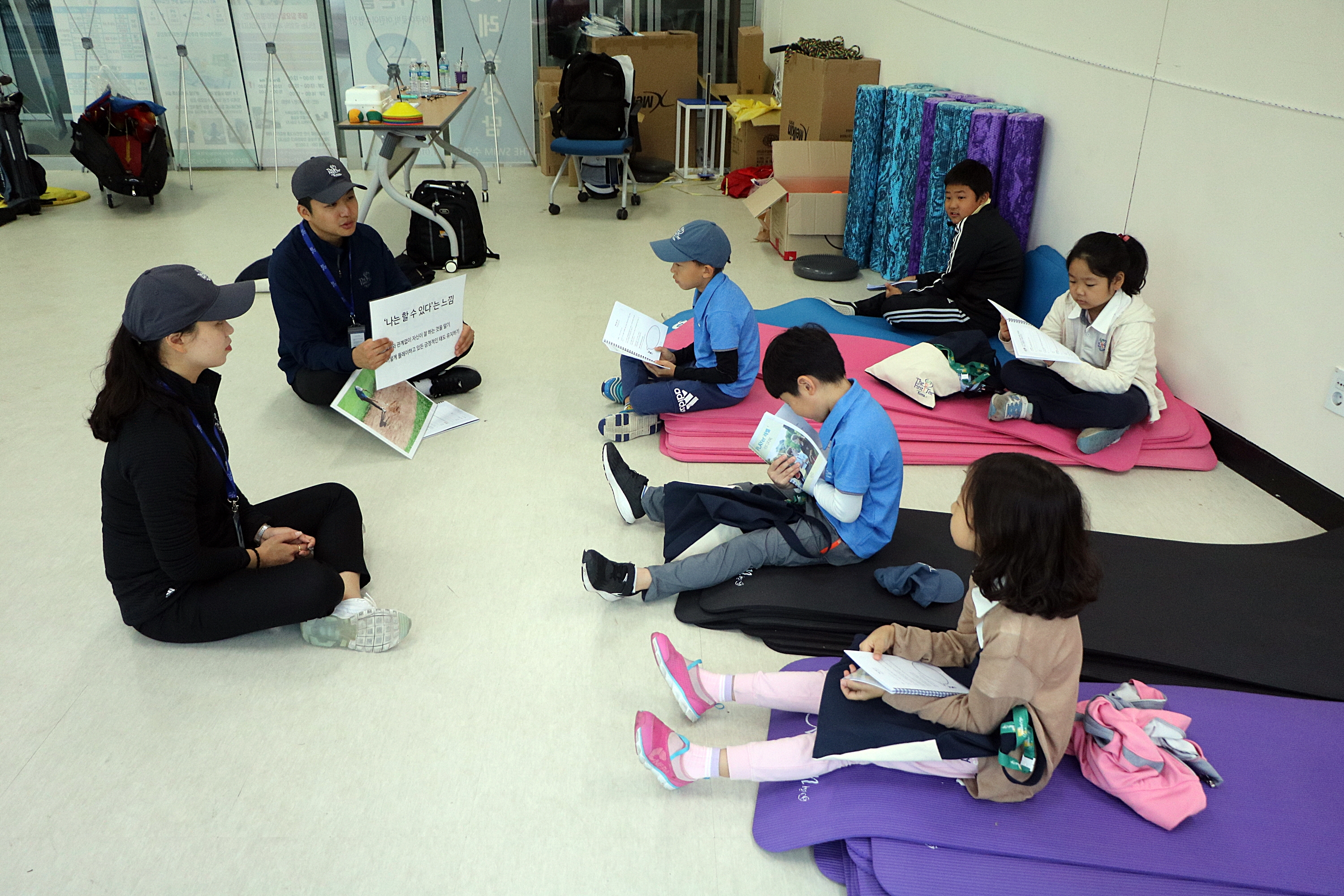 6주차 핵심가치 주제인 자신감에 대해 토론 중인 코치와 아이들