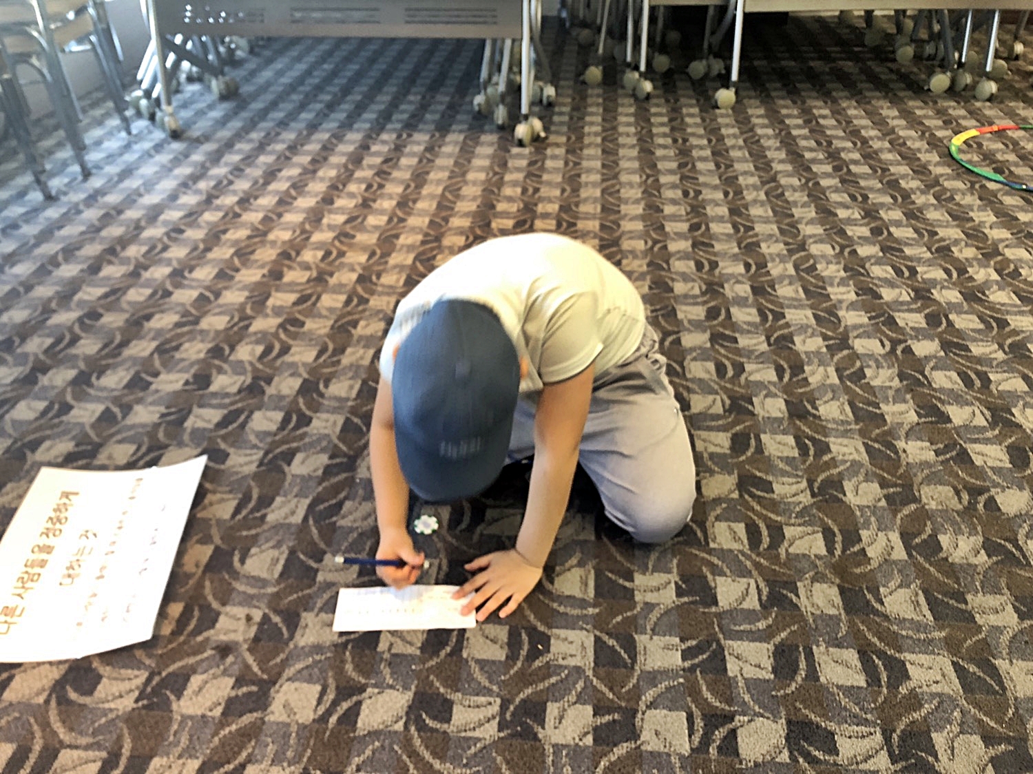 엎드려서 공부하는게 아니라 스코어 카드 적는거에요.