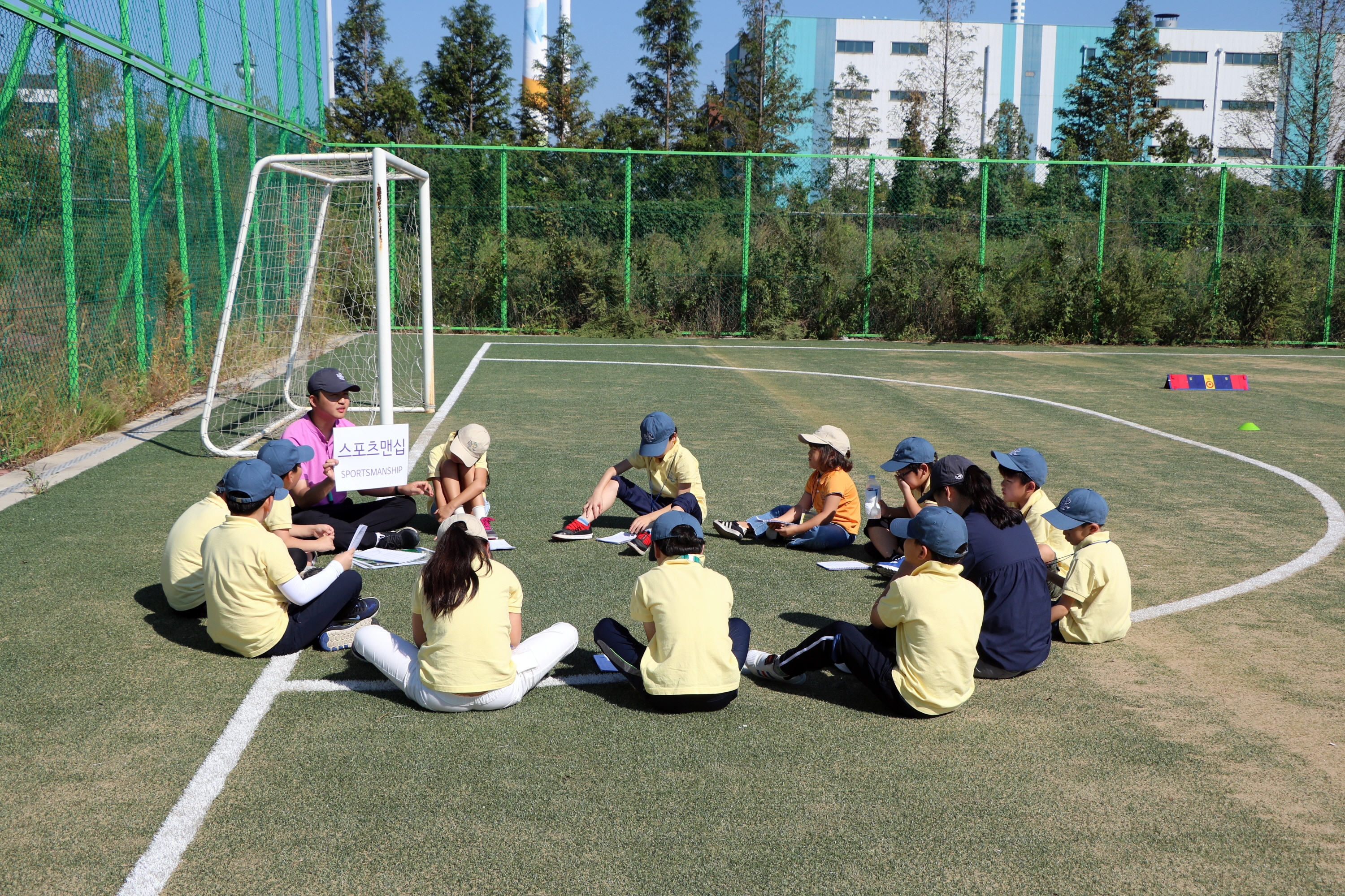 5주차 주제인 스포치맨십에 대해서 아이들에게 설명해주고 있는 코치들