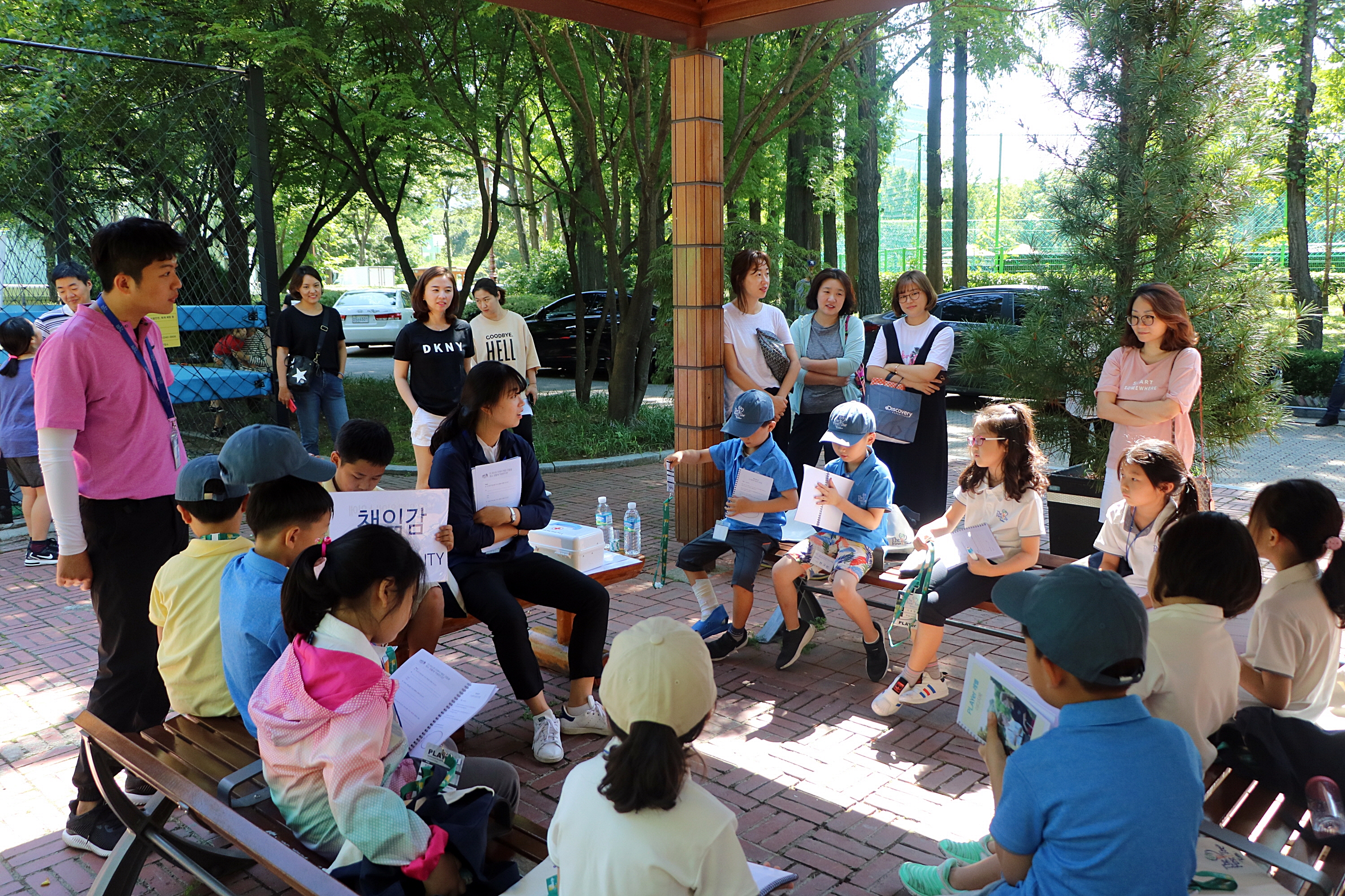 모든 교육을 마치고 집에 돌아가기 전 오늘 배운 내용을 한번 더 복습하고 있는 아이들