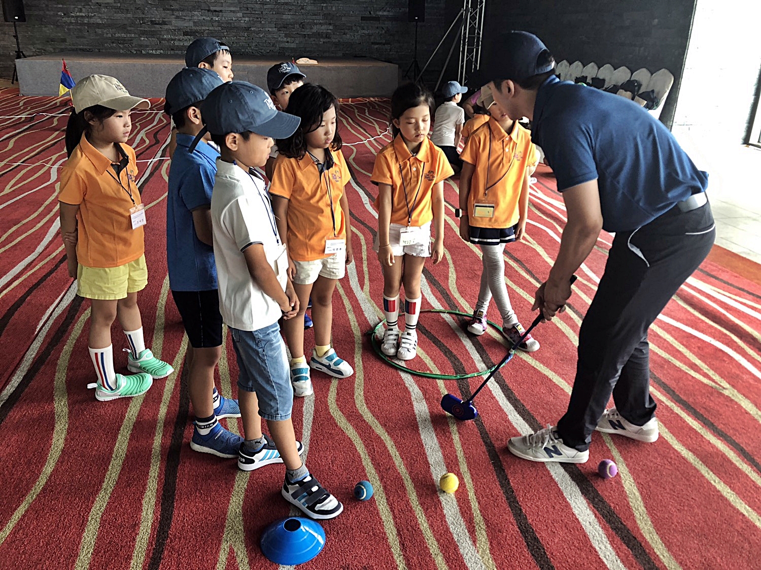 아이들의 눈높이에 맞게 최대한 쉽게 설명을 하고 있는 코치