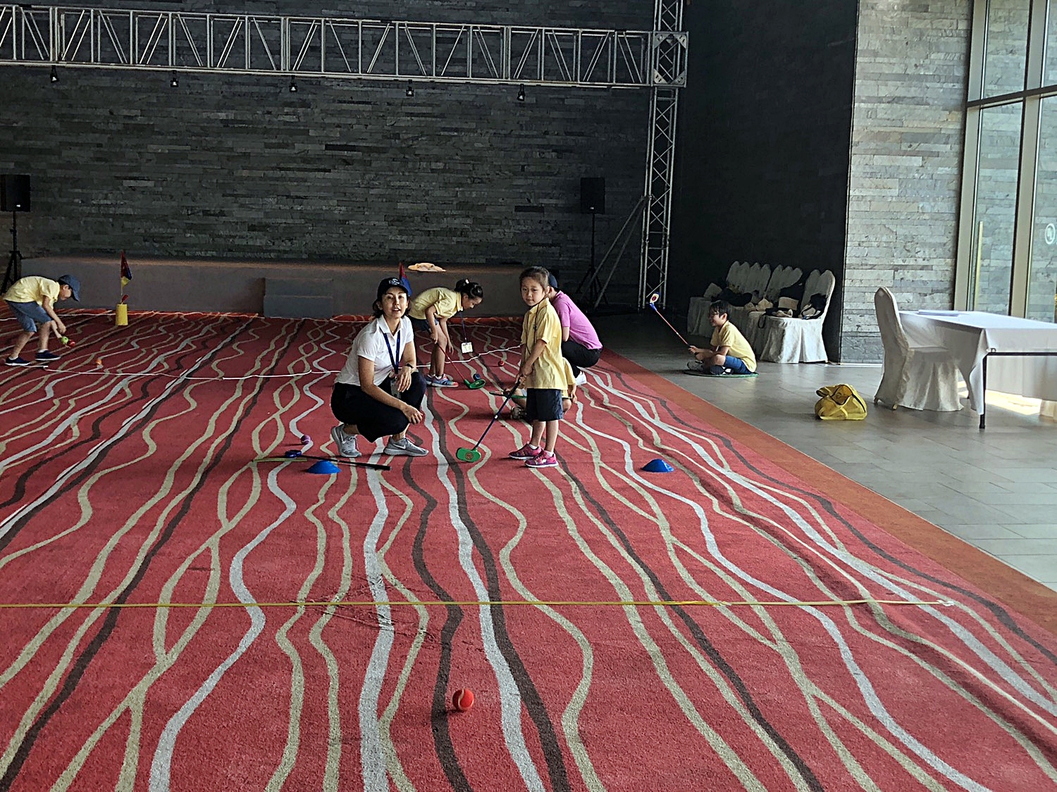 코치님의 밀착 지도로 퍼트시 거리감에 대한 개념을 깨달아가고 있는 아이들