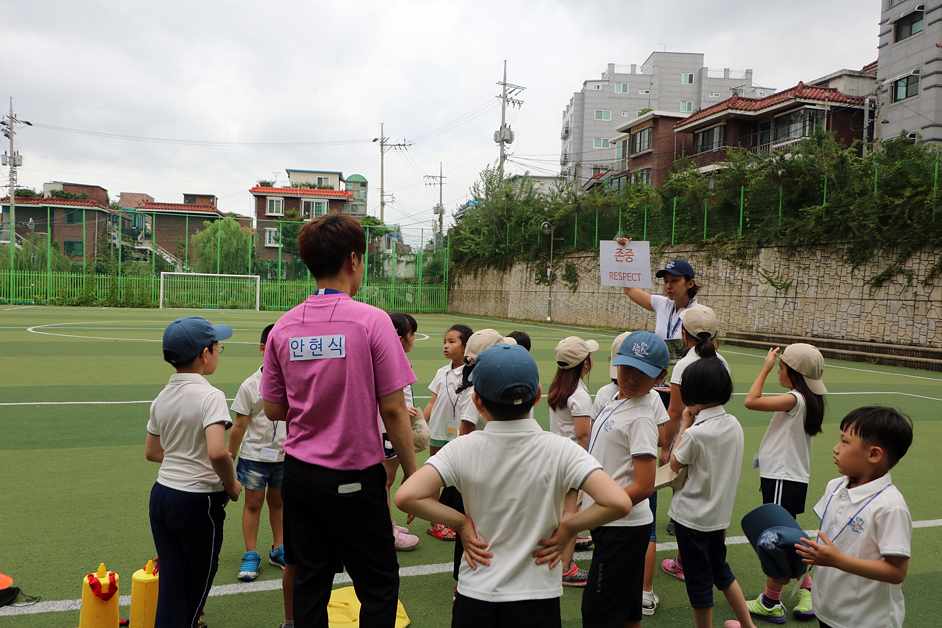9가지 핵심가치 중 하나인 존중에 대해 설명 중인 코치