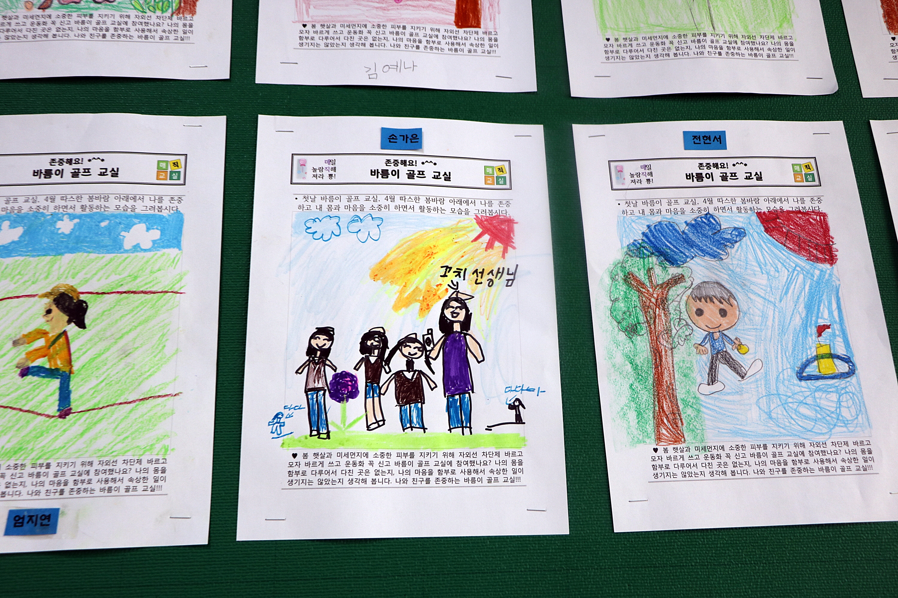 그동안 교육을 받으며 즐거웠던 순간을 그림일기로 표현한 아이들