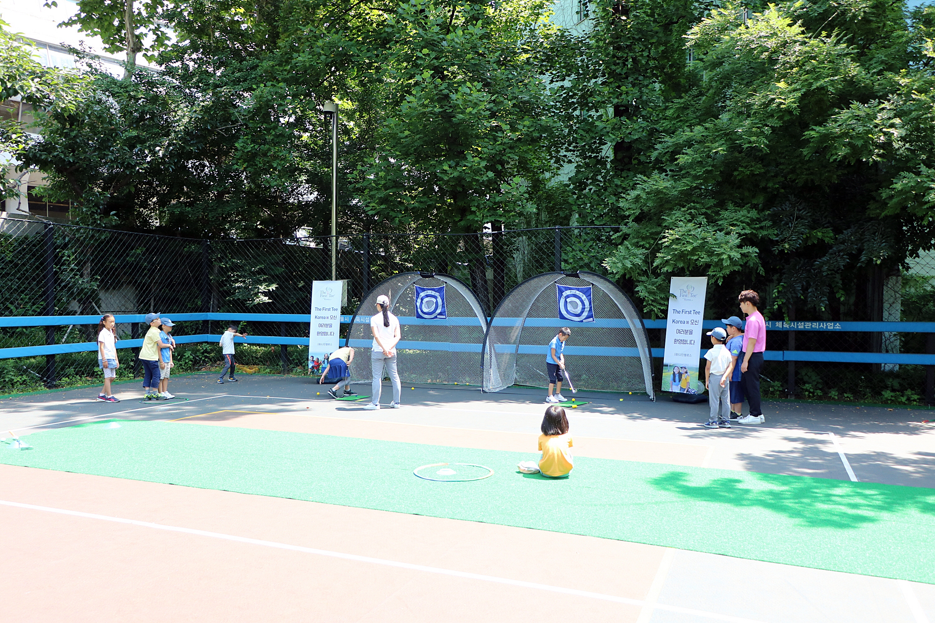 2개조로 나뉘어 차례대로 직접 풀스윙을 해보고 있는 아이들