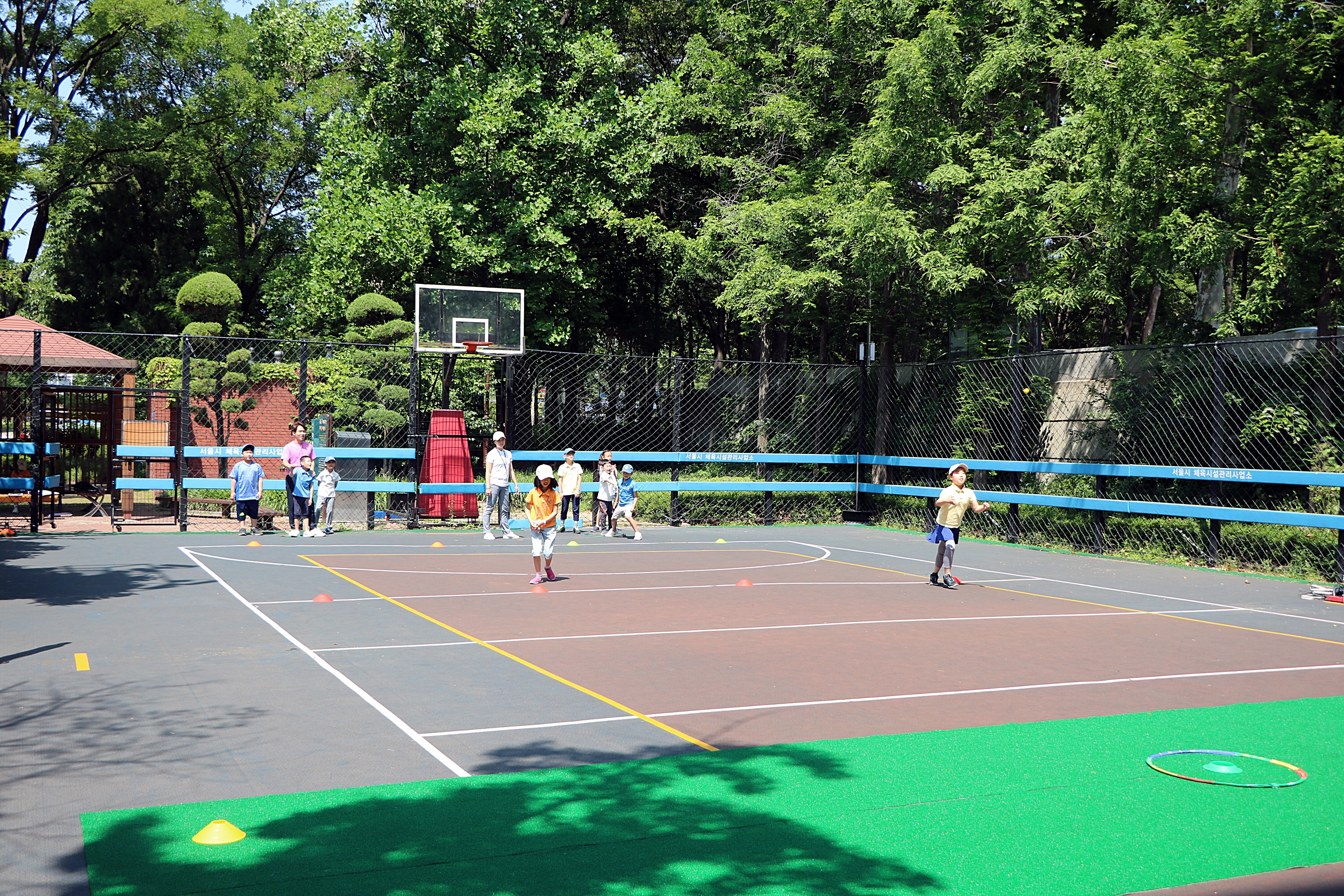 스윙크기에 따른 비거리의 변화를 알기 위해 손으로 골프공을 던져보는 아이들