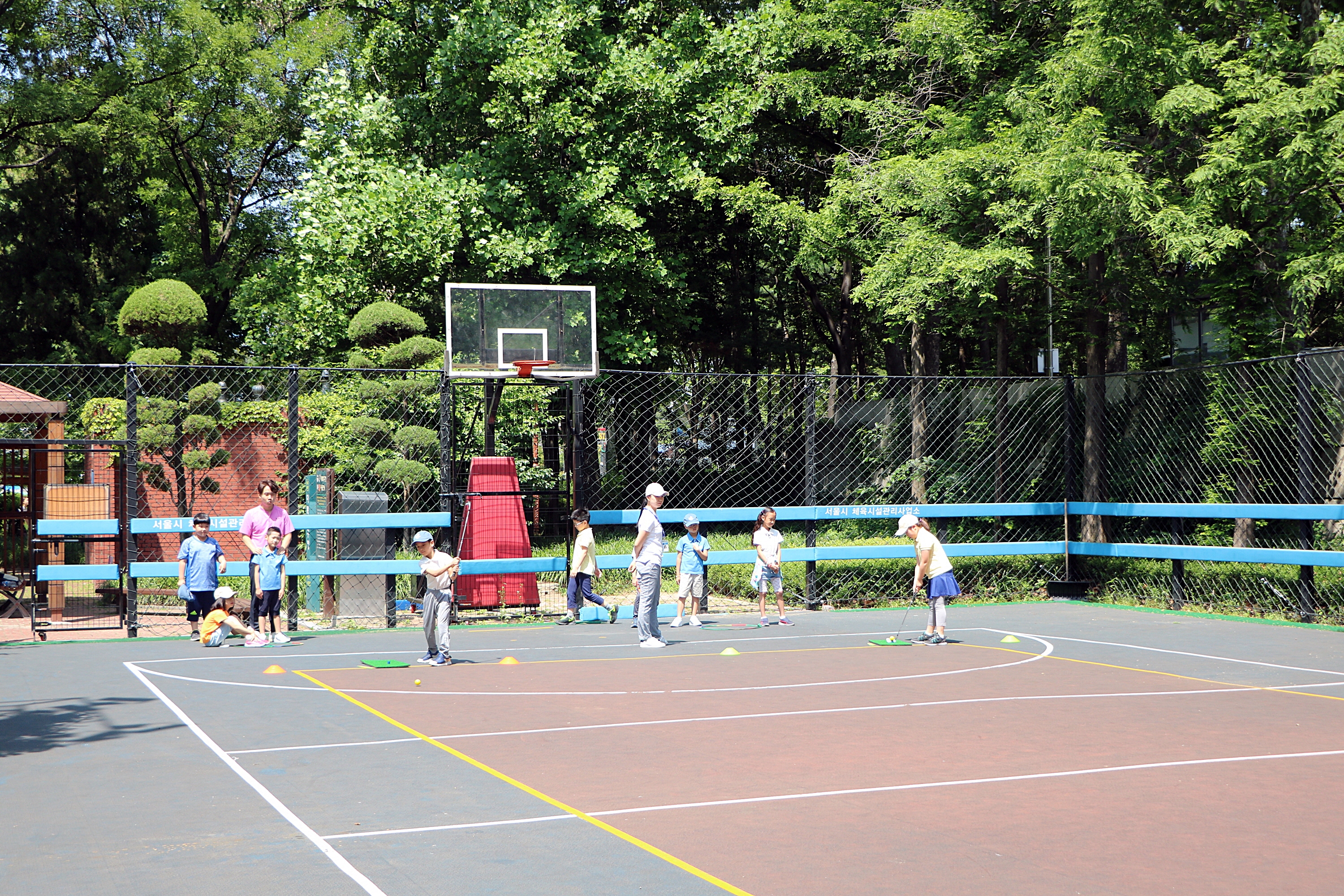 실제 골프클럽으로 L TO L 스윙을 해보며 실전감각을 키워가고 있는 아이들