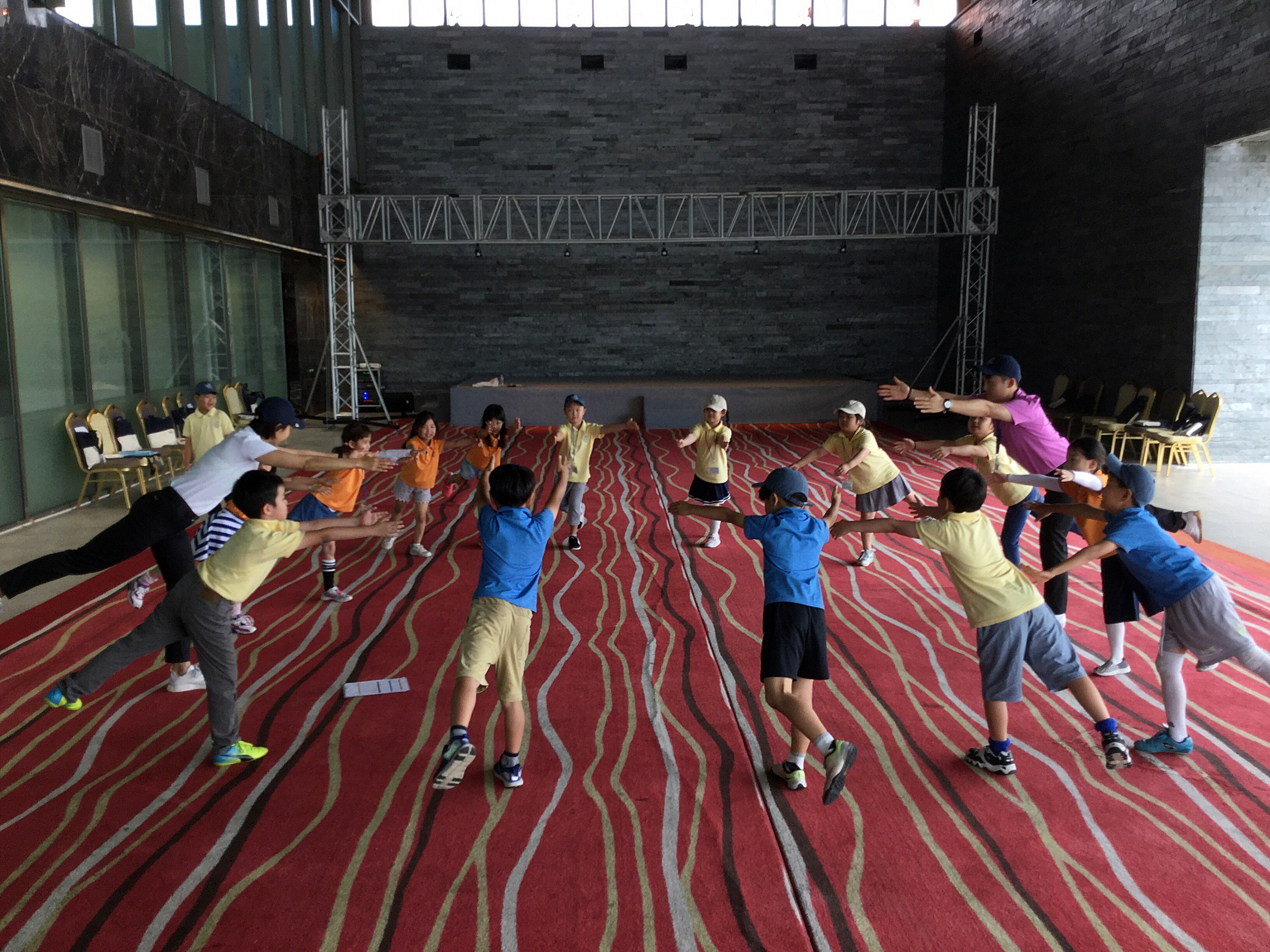 부상방지를 위해 코치님과 함께 몸풀기를 하고 잇는 아이들