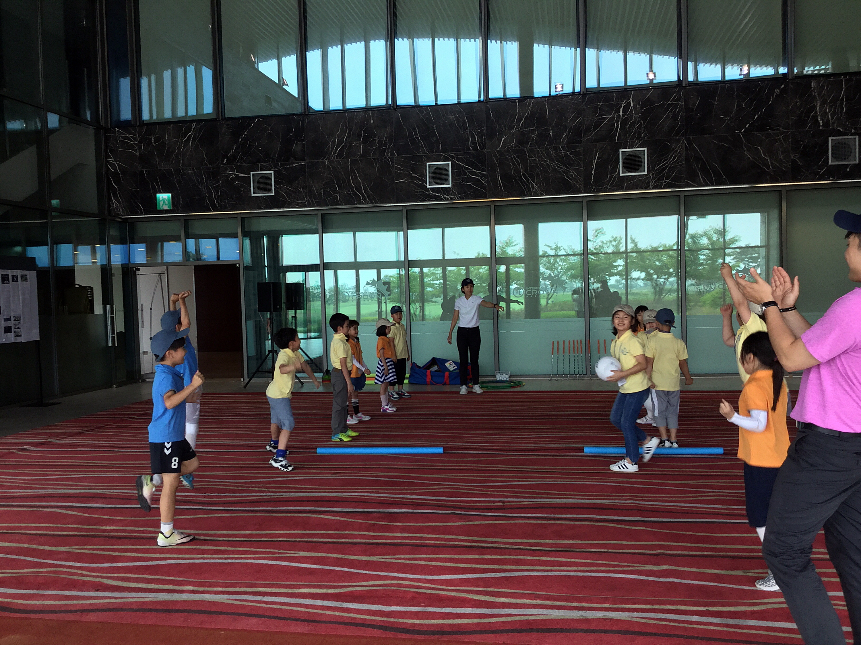 조별 시합에서 승리한 후 기뻐하는 아이들