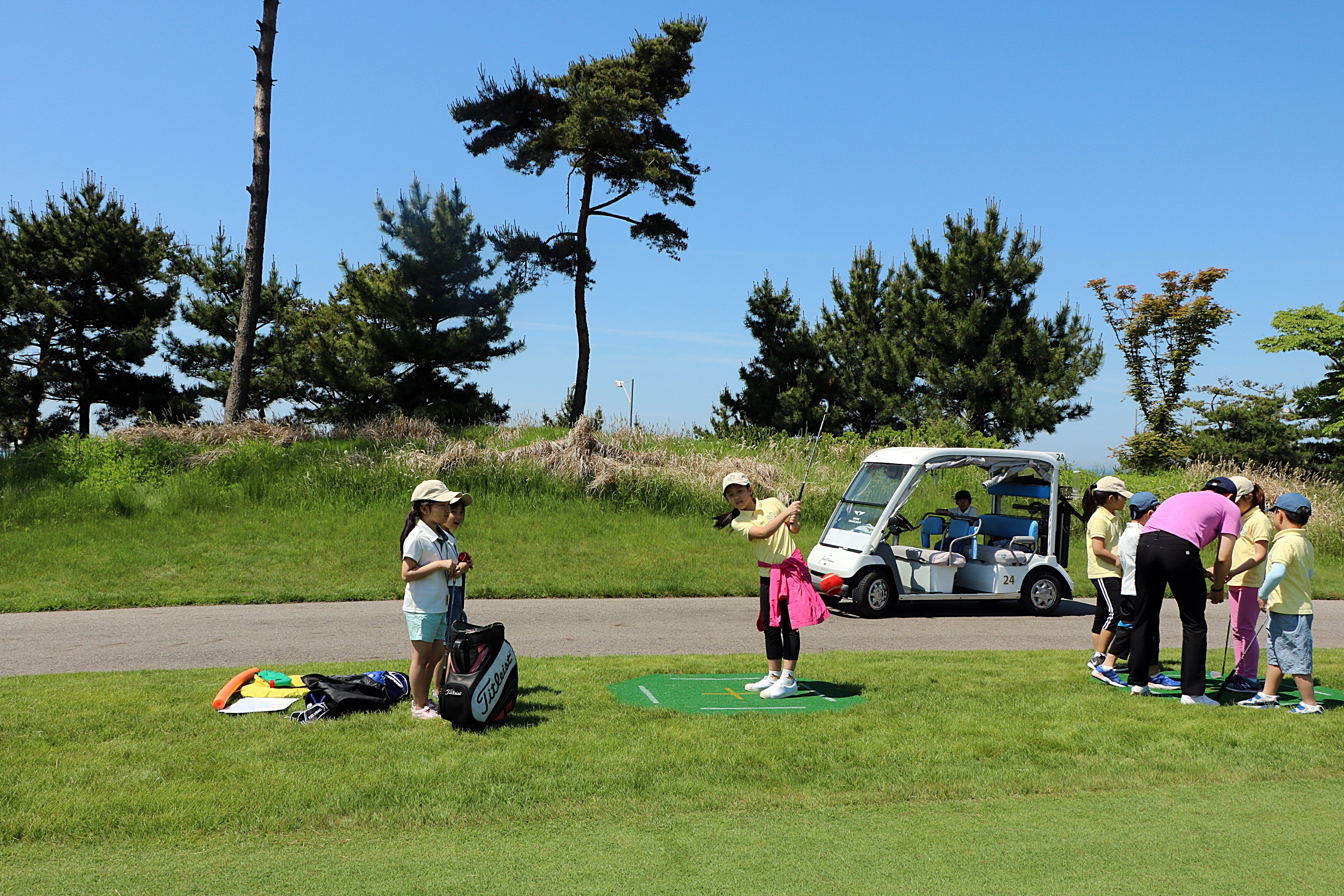 자신이 직접 실전골프스윙을 해보며 골프에 대한 이해도를 높여가고 있는 아이들