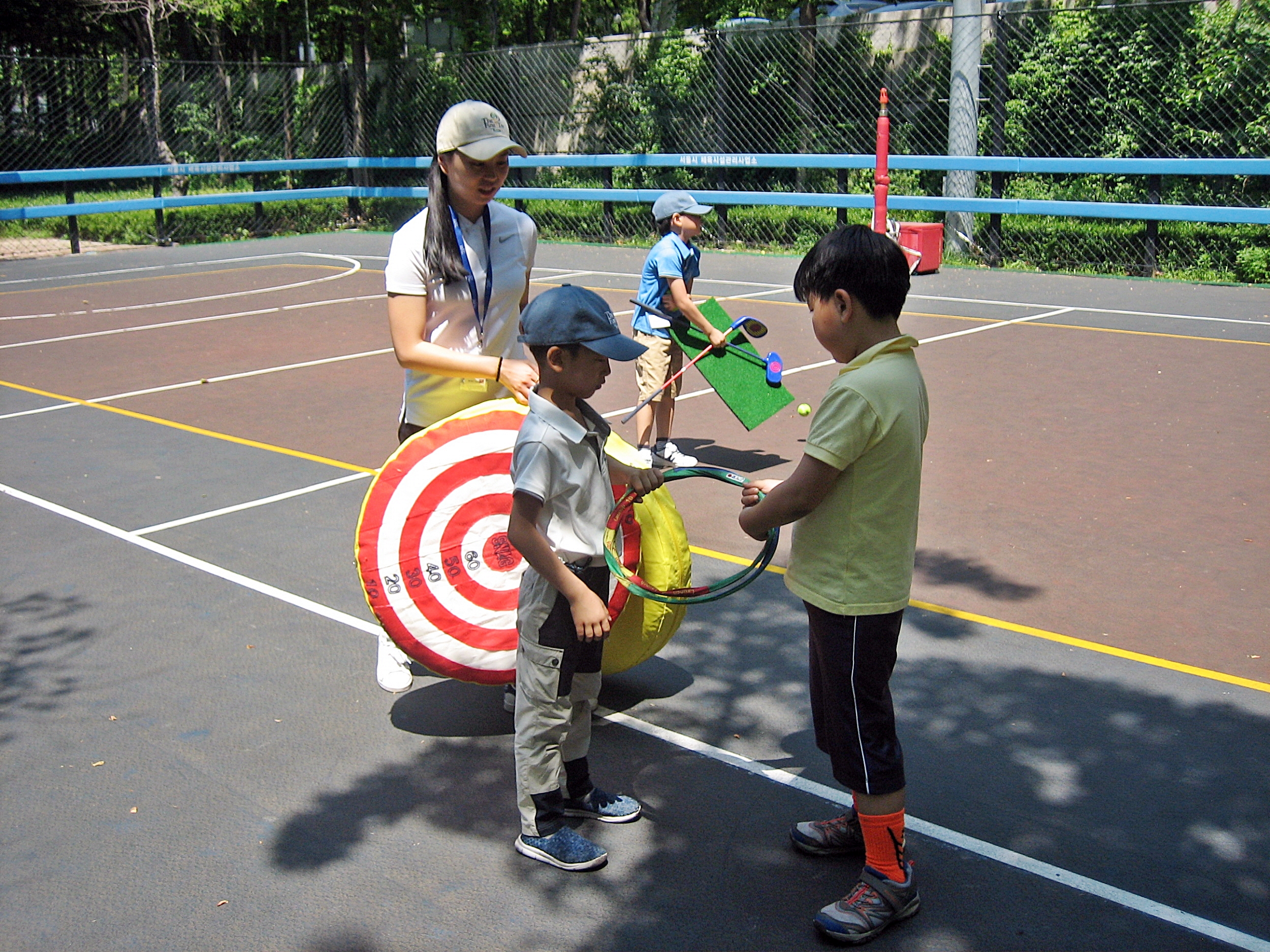 코치님을 도와 자신들이 연습한 교구를 정리하고 있는 아이들