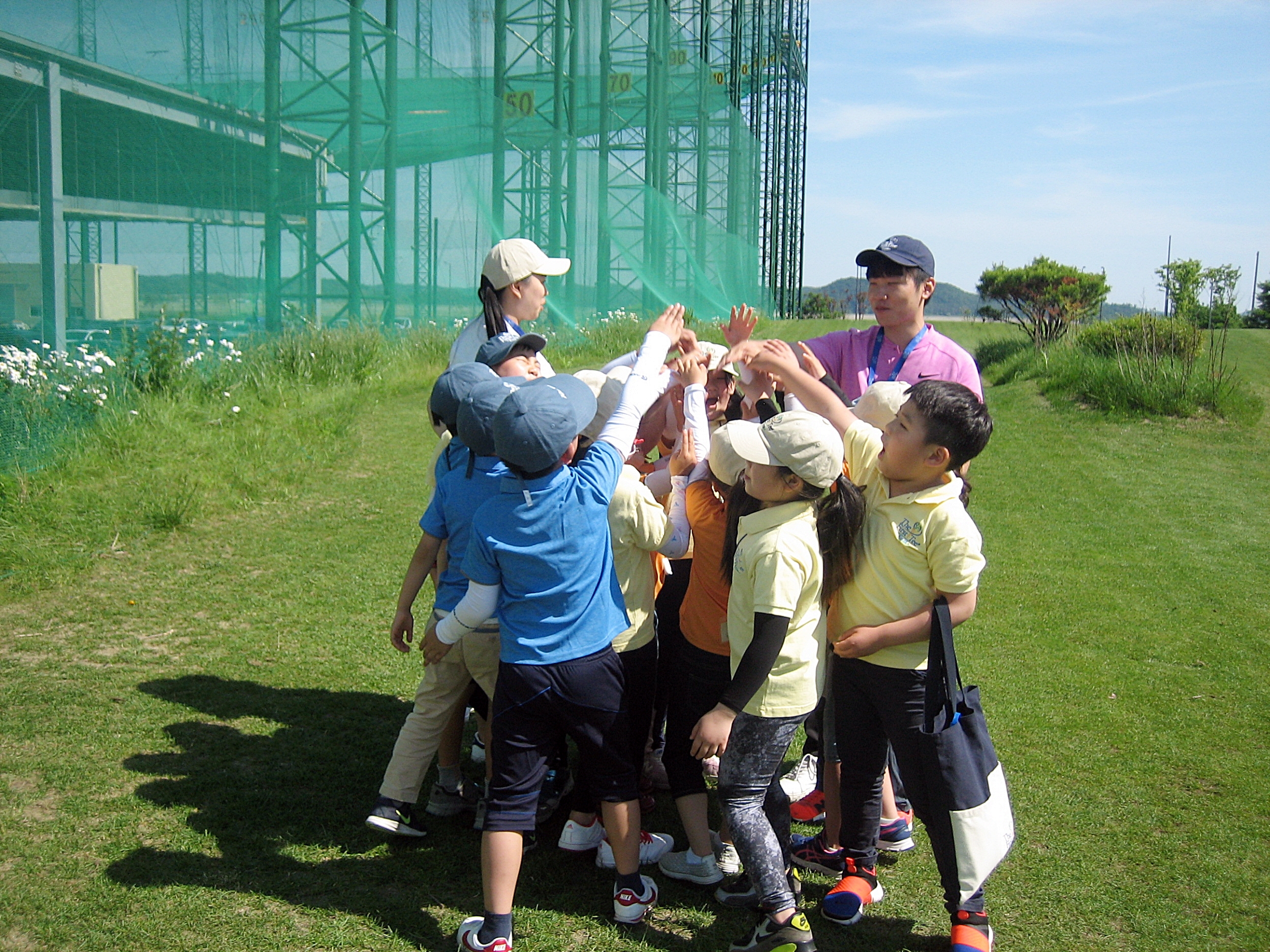 교육을 마무리 하면서 '더 퍼스트 티'를 목이 터져라 외치고 있는 아이들
