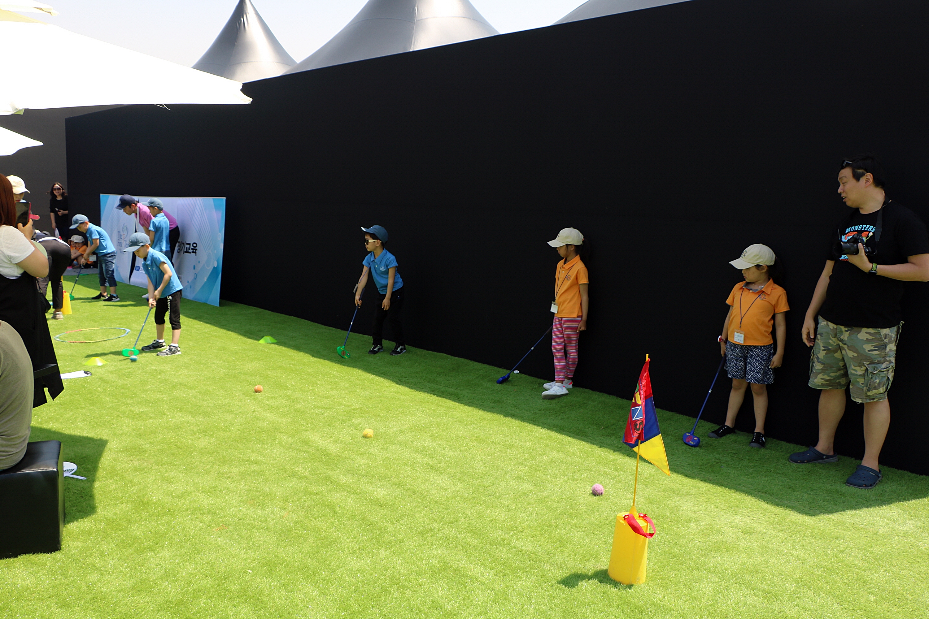 모두 자신이 티샷한 볼 옆에서 마지막 선수가 플레이 하는 것을 조용히 지켜보고 있는 아이들