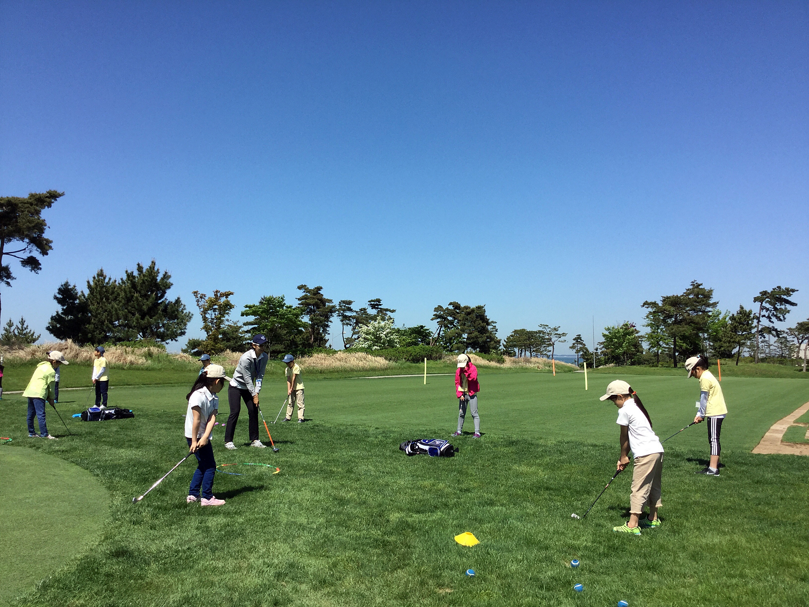 코치님을 따라서 올바른 스윙자세를 배우고 있는 아이들