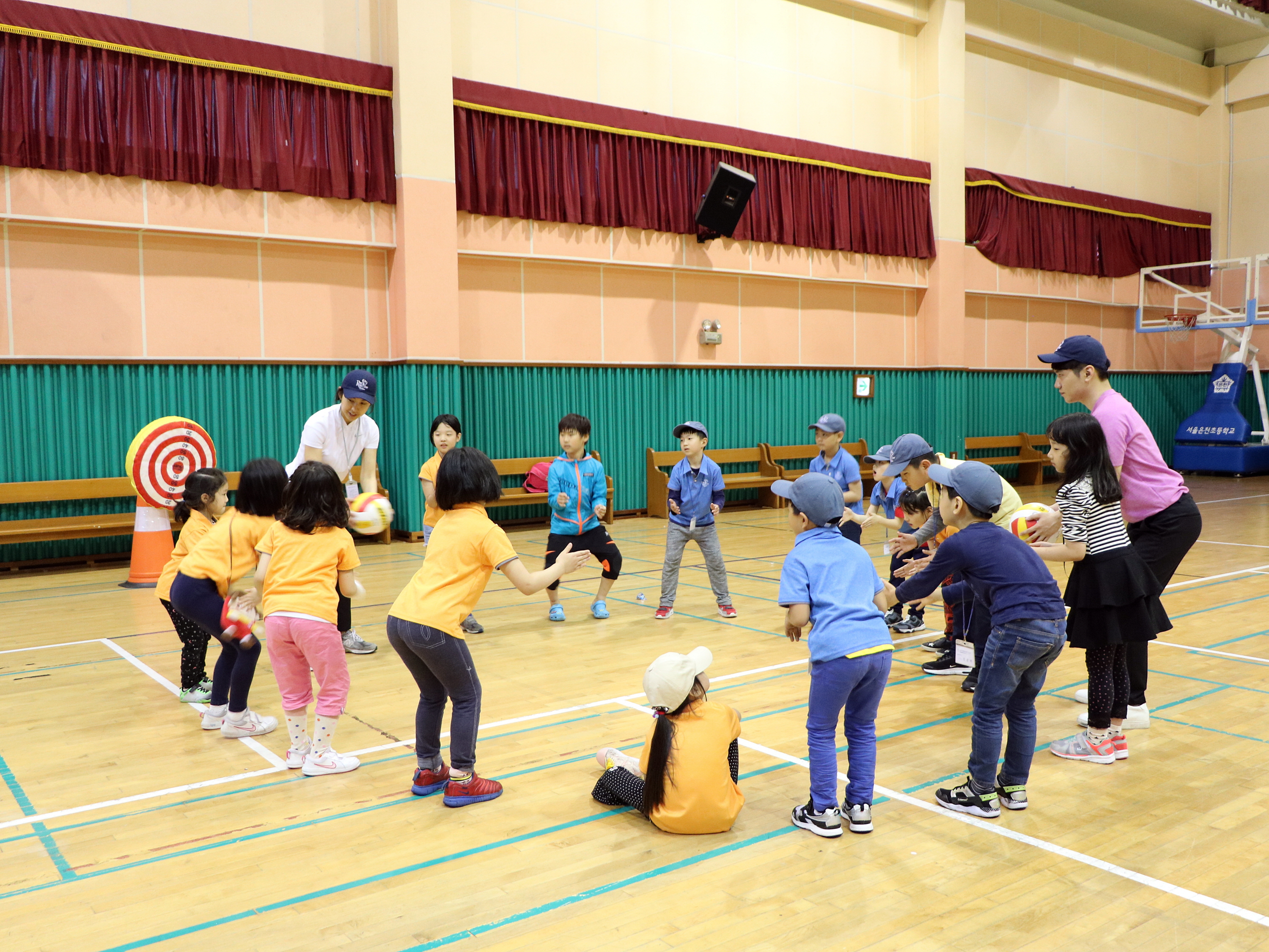 원형으로 둘러서서 스윙에 대한 리듬감을 배우고 있는 아이들