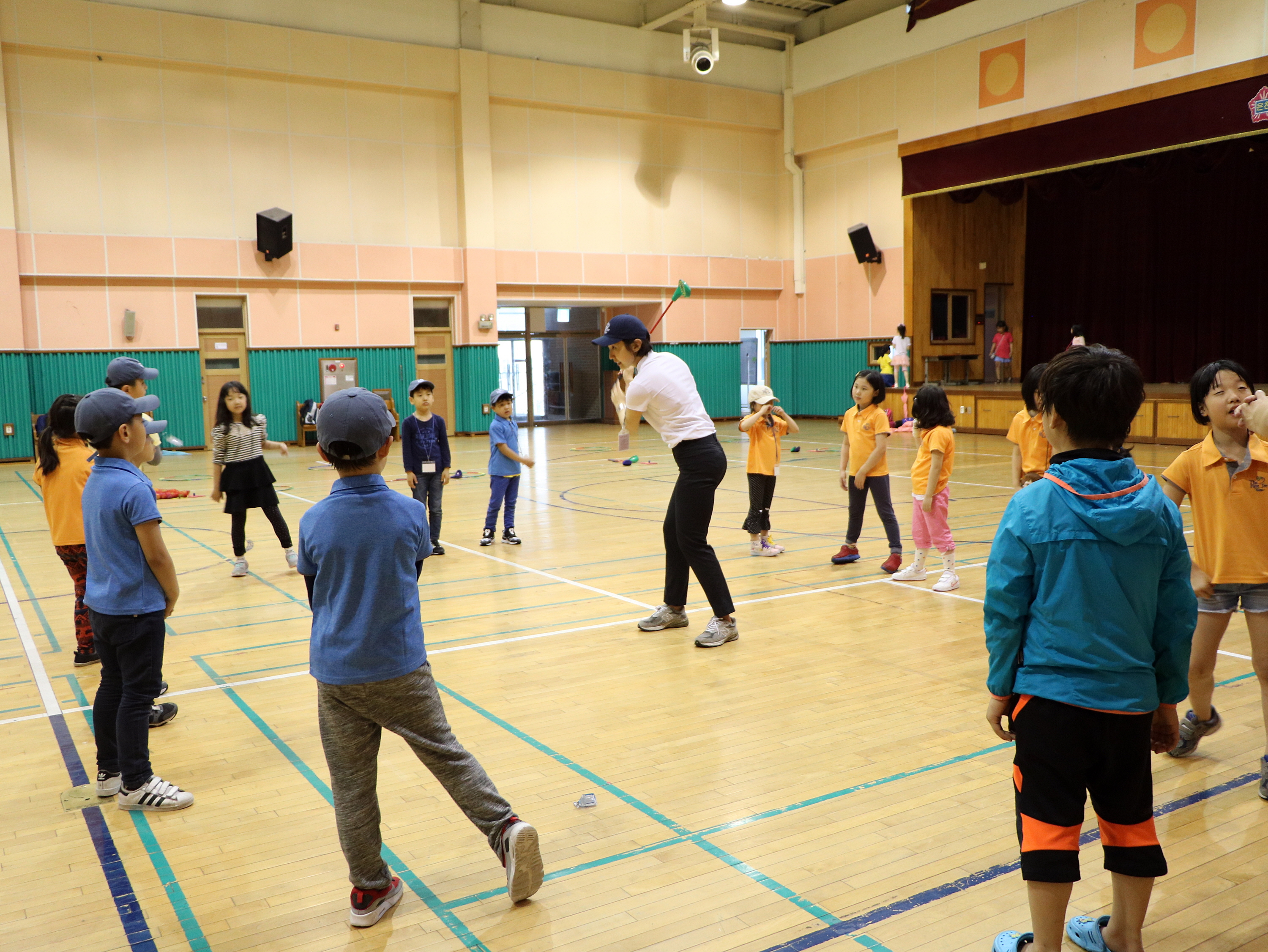L자 스윙에 대한 요령을 배우고 있는 아이들
