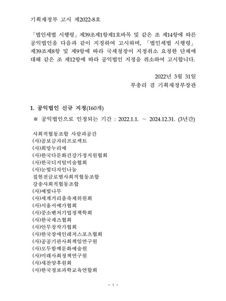 기획재정부 고시 제 2022-8호